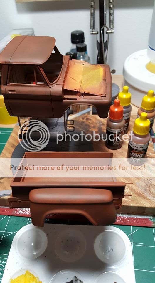 frozono Posted September 18, 2015 Author Posted September 18, 2015 (edited) Thanks everyone........ an update....... the tailgate...... First step for wood weathering...... base color Testors CreateFX natural color....... then tis are some of the paints and materials that i use.......... Almost done.............. I will post more pics......... Luis nice touch on the blanket. i want to try and make one. Truck is really coming along... It's not hard...... takes time.... the thing that will take you time is choosing the colors....... Edited September 18, 2015 by frozono