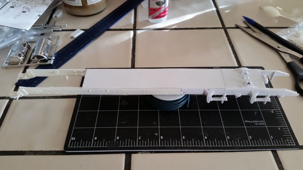 Petetrucker07 Posted December 20, 2015 Author Posted December 20, 2015 WOW!!! I can't believe how time flies. I would've bet the farm I started this last month, boy was I wrong. 3 months it's been sittin here. Well, I guess part of the problem why it sat, is I wasn't happy with the stretch. The pieces weren't matching up to my liking. So I let it sit. Today I decided to just start doing something and hope I get in a groove. I started by removing the 1 inch piece of extra frame rail, made the deck plate and started assembly on the CAT.