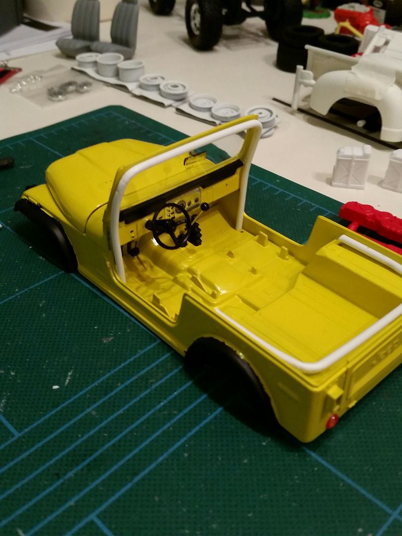 Davewilly Posted September 16, 2015 Posted September 16, 2015 I started on this a while back...had some paint issues ...still dont like it...but I will just make it a trail queen instead of a trailer queen. Working on the roll cage right now and sorting out what I want it to look like....also my first time to try binding the plastic tubing and all so we'll see how it all comes out. Thanks for looking...comments good or bad are welcomed. Dave I made the shifter from a straight pin, seats are from the part box...I lengthened the drive lines and they have sort of working U-joints and a sliding shaft for the increased travel with the lift. mufflers are from the part box..exhaust pipes are made from leftover exhaust form the parts box. did some basic engine details. fuel lines run the the tank to the pump..then pump to carbs. thats about where I am at so far..
