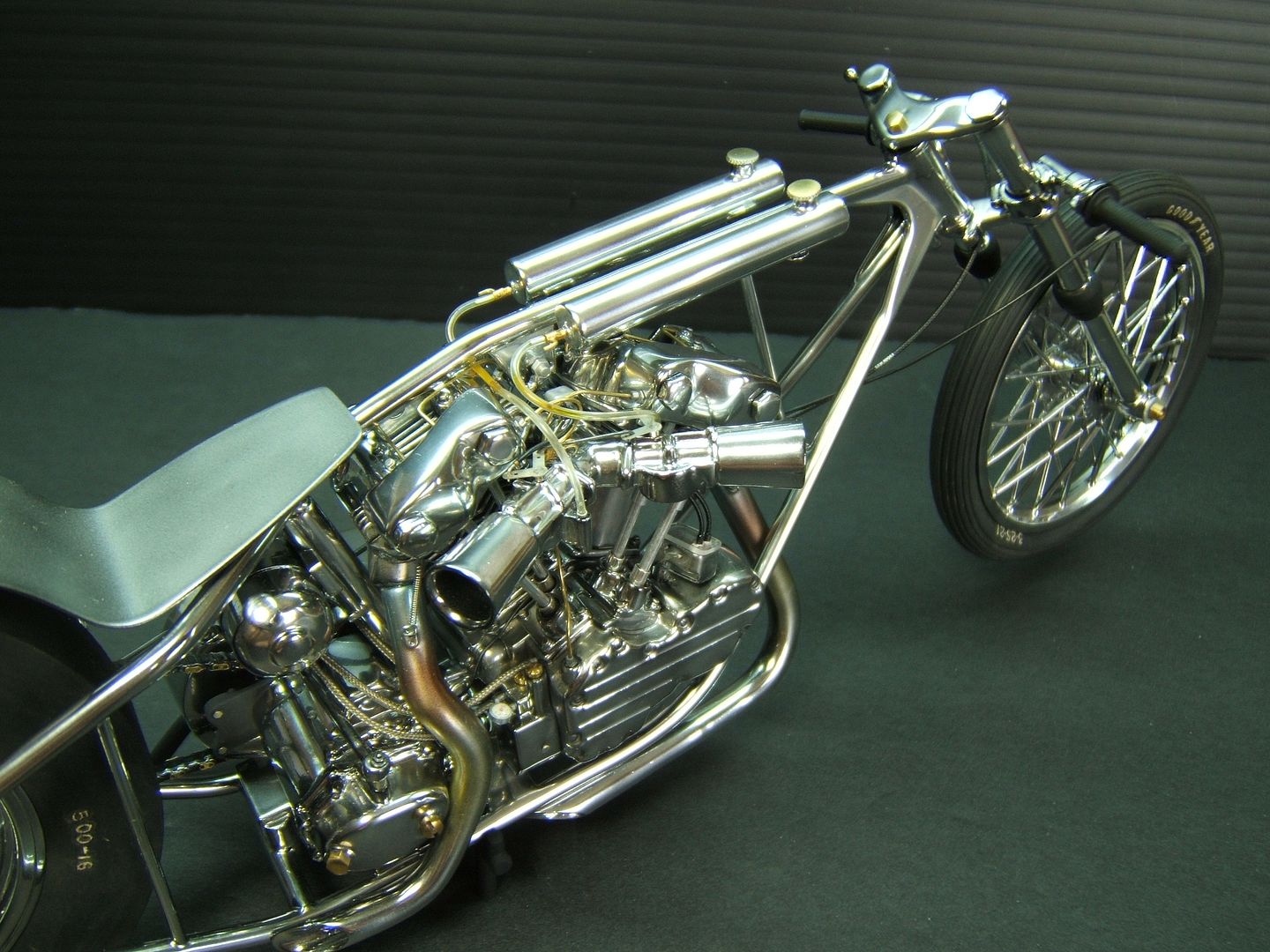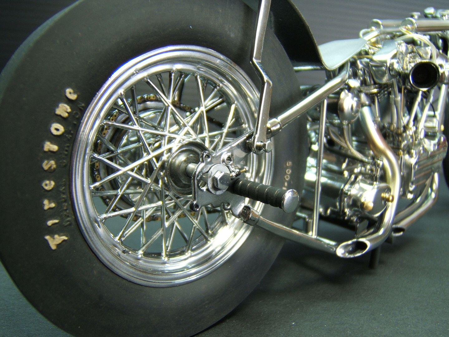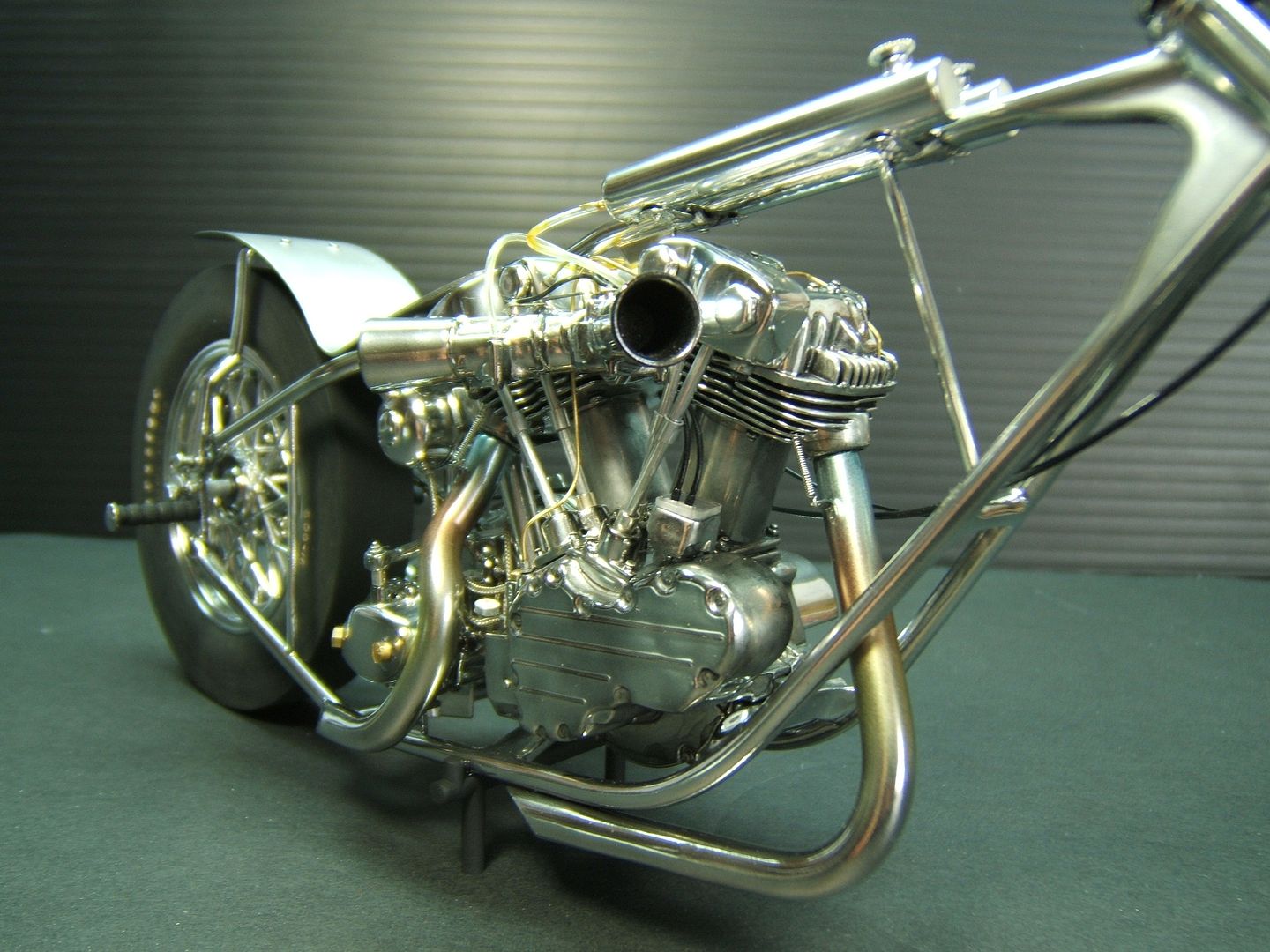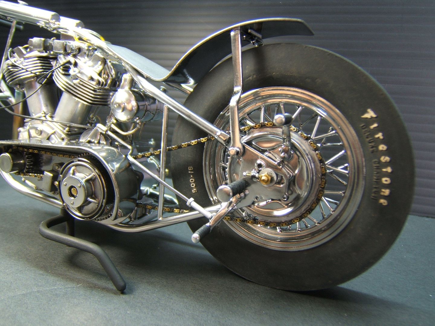 Hello......thank you all so very much for the kind comments......I really do appreciate them:)........I made and painted the fuel tanks Alclad and got them assembled to the frame.......I made some pet cocks and and used Tamiya clear yellow inside the clear fuel line to look like fuel.......I also made some wheel adjusters and got them attached.......I also attached the seat,foot pegs,shifter peg and brake peg.......I will have finished "Outside" pictures soon.......thanks for looking.