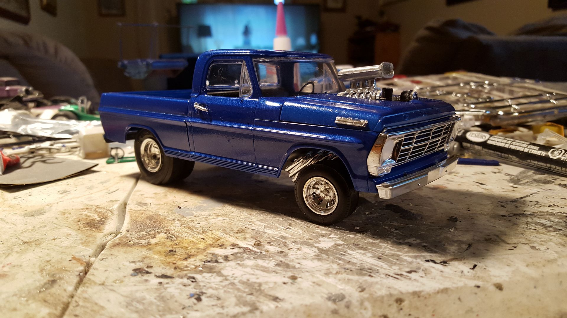 BLOODBANE Posted October 20, 2015 Posted October 20, 2015 I think Im gonna call this one done for now...... Wheels and tires are from the Ice T kit, engine is from the Zingers Dune Buggy (headers and wheelie bars are also). I tubbed the rear tires. i really enjoyed this kit. it went together great (no real fitment issues, considering the extra's). Nothing fantastic about the engine (no wiring). When the weather gets a little nicer, I will try to get some outdoor shots. Thanks for looking....