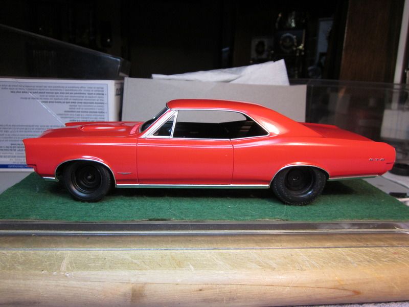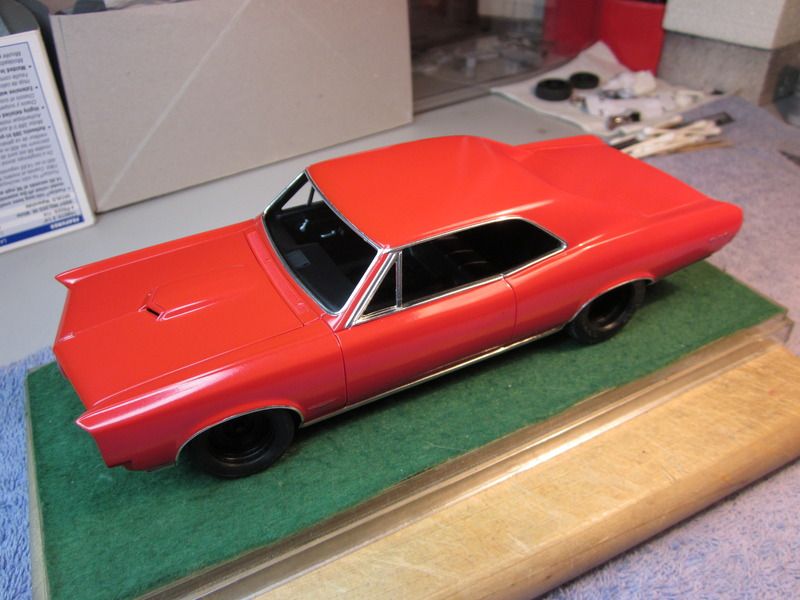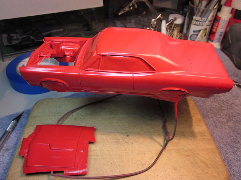 Speedpro Posted November 27, 2016 Author Posted November 27, 2016 Again, It's been awhile since any update but I have got a few things done. Got the body primed and painted with Tamiya white surface primer and TS-85 bright mica red. I overlaid the emblems on the body with the kit decal's. Then it was onto the BMF. Always fun to do. Also got the chassis painted and mostly assembled. Painted the interior and completed the dash. Here's a few pics of where it sit's right now.................................
