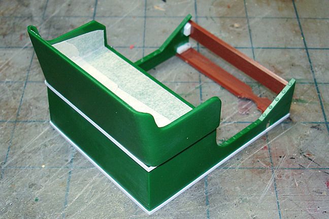 Harry P. Posted December 5, 2015 Author Posted December 5, 2015 I really went around in circles in my head as far as what colors to use on the body. At first I was going to go with a yellow lower half and black upper... then black and red, then finally I decided on keeping the bottom part "wood." The plastic looks pretty much like wood veneer in that scale... it has a visible "grain" to it. I'm thinking that under a few coats of clear it'll look reasonably close to a wood veneer. Trying to cover the lower half with either fabric or leather would have been a nightmare.I'm going to upholster the seat with dark red velour fabric, and the interior will be a matching dark red–I bought some heavy, stiff colored paper in the scrapbooking aisle at Hobby Lobby that I will use to cut the individual interior panels from.The interior floor will be stained wood, and the roof of the coach will be satin black. And oh yeah... I will be adding a scratchbuilt wooden trunk out back to replace the (too small IMO) kit supplied trunk.