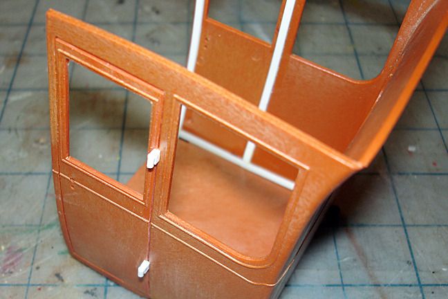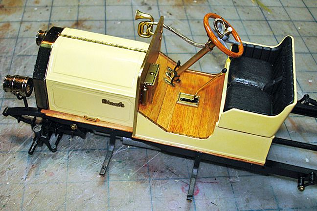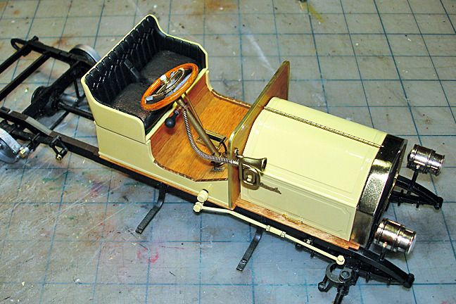 Harry P. Posted November 30, 2015 Author Posted November 30, 2015 I replaced the molded-in hinge detail with a length of brass rod that I cut individual hinge leave detail into. Still working on adding the various details to the body and interior, but it's getting there. I did the steering wheel rim the same way I did the wheels... tan craft paint, then a dip into wood stain, Oops... I see I still have to paint the center nut on the steering wheel...