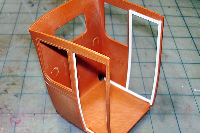 Harry P. Posted December 5, 2015 Author Posted December 5, 2015 On the inside, the kit part has engraved "woodgrain" on it, but as we all know, "nothing looks more like real wood than real wood," so I added that to the inside of the front wall... I'm replacing all the thick kit glass with thinner clear styrene sheet, an easy fix because all the coach glass is flat, or in the case of the rear window, curved... but only in one direction, not a compound curve... Things are looking a little messy at this point, but once I paint all the window trim and install the interior panels, all of the edges will be sharp and well-defined.