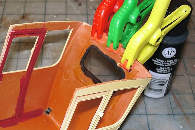 Harry P. Posted December 5, 2015 Author Posted December 5, 2015 I decided to go with a yellow upper and "wood" lower on the coach body. Then I used Tamiya tape to mask off the window trim and painted that black. This is the coach body front wall...