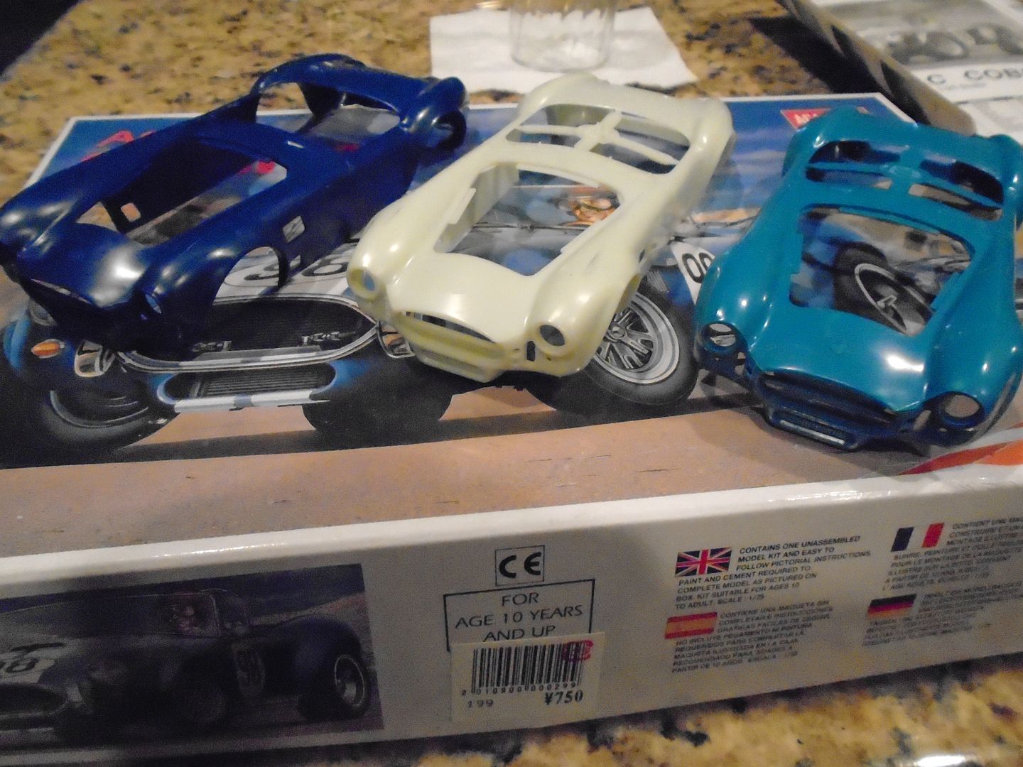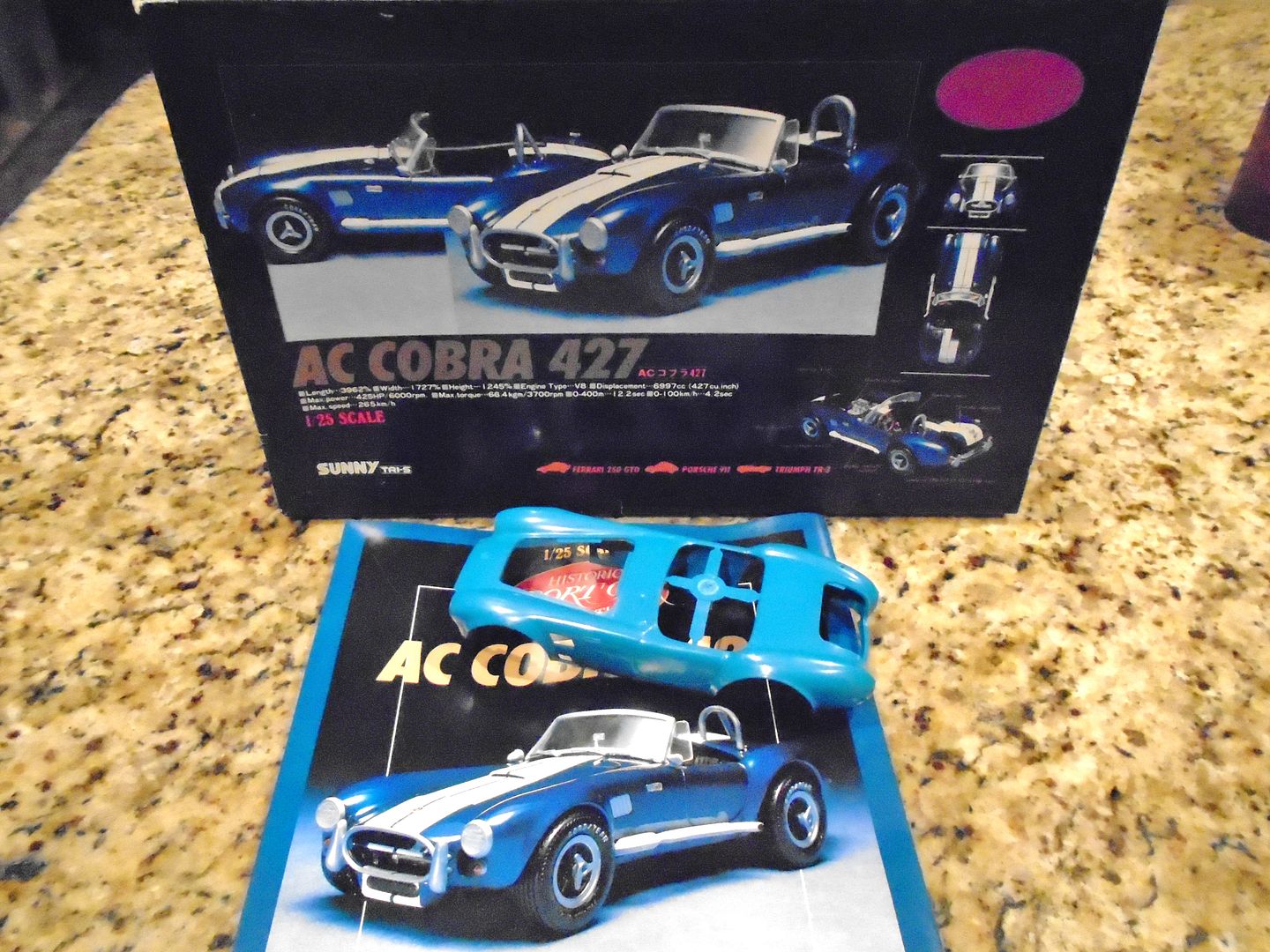 afx Posted December 6, 2015 Posted December 6, 2015 Here is a pic of the Russian Cobra kit I mentioned. It is labeled an Academy kit but it says it's 1/24 scale which I don't believe. I guess I will know for sure in 3 or 4 weeks ! : ) Anybody ever see this kit ? Ray, found out why the car is shown with right hand drive. CSX3303, the Cosby car, was crashed by a subsequent owner. He was killed when the car left the highway and tumbled down a cliff. A gentleman from England bought the mangled remains and had them exported back to England. The car was re-built using a new chassis and body. During the rebuild it was converted to RHD. Interestingly the rebuilt car ran 48 IDA Webbers in lieu of the original twin Paxton superchargers. Therefore the large hood bulge would not have been necessary. In addition the rebuilt car was painted deep maroon with dark red interior.