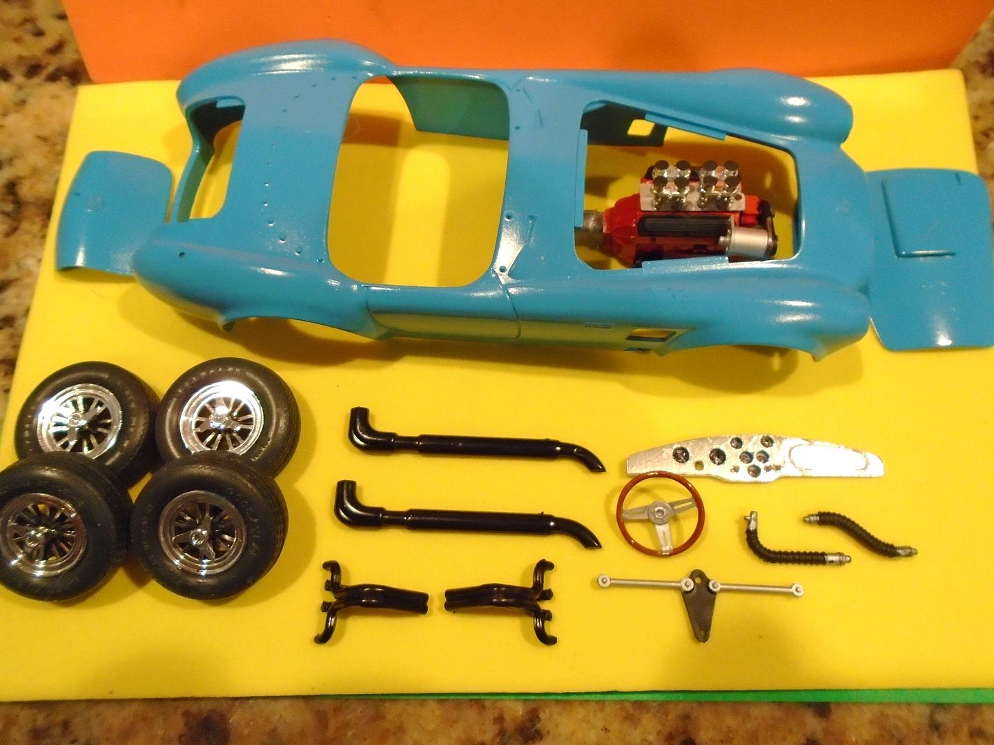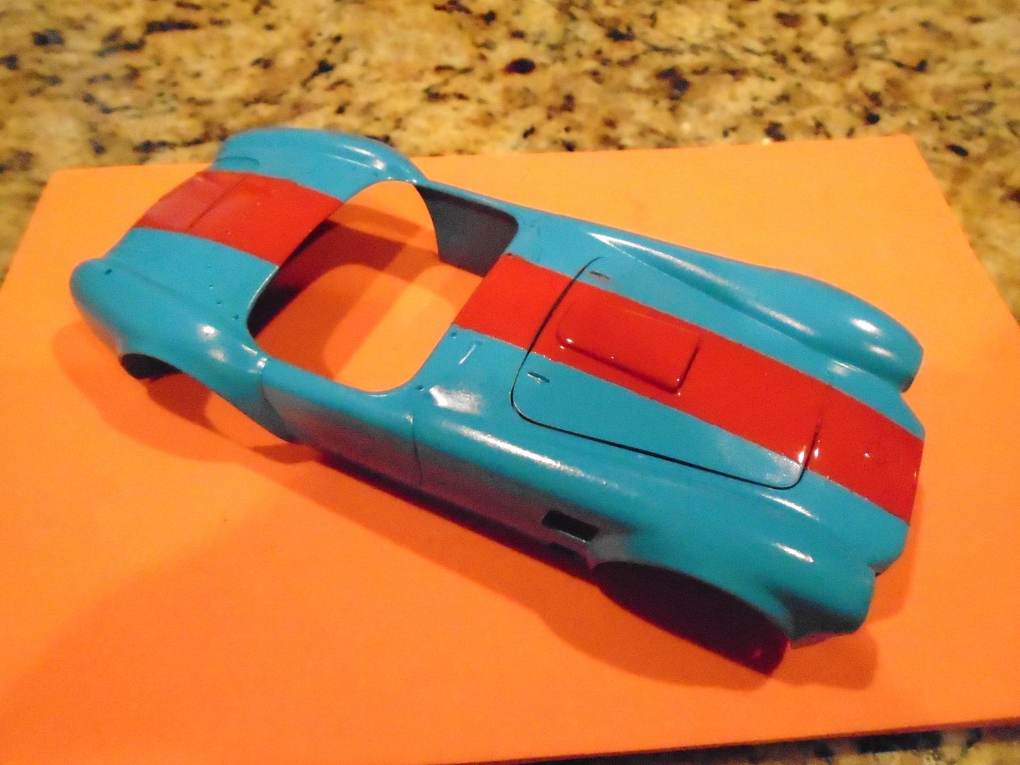 cobraman Posted December 8, 2015 Author Posted December 8, 2015 Found some time to work on this kit after putting up all the Christmas lights and decorations. There are a couple other Cobra builds going on around here now that are better than this old glue bomber can do but I won't let that stop me from gluing my fingers together or smearing some paint here and there. : ) Covered the dash with BMF and drilled out the gauges and glued some faces from behind. Then used some Krystal Klear to make the lens. Drilled a few more holes and used some stretched sprue to make some toggle switches. The body was cleaned up and primed and sprayed with Model Master Big Bad Blue. It was then masked and the stripe was painted with Duplicolor orange/red. Still needs to be cleared.