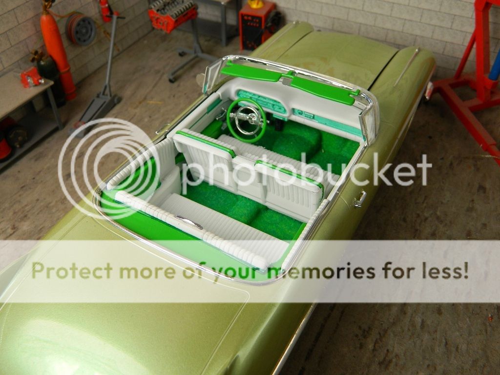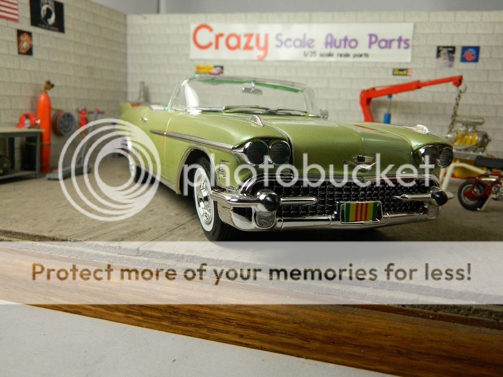 crazyjim Posted December 25, 2015 Posted December 25, 2015 Merry Christmas everyone. Here's my latest completion, a 1958 Cadillac Eldorado Biarritz. I tried tried something different on this build with the paint. I mixed some Pearl Ex spring green with HOK SG100 interclear and shot the car. Didn't wire the engine and didn't even paint the chassis because it was molded in black.