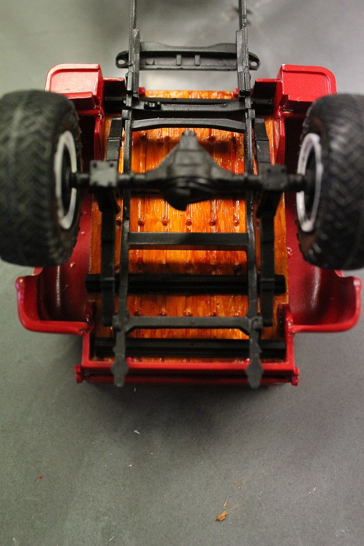 Atmobil Posted August 19, 2016 Author Posted August 19, 2016 I finally have a little update on this. I have painted the cab and hood and here you can see it mocked up on the frame with the grille and front bumper.I will use the flame decals from Revells 64 Ford Fairlane Thunderbolt and that is why it is white on the front. Last night I mounted the rails for the bed and mounted the bed on them. And during last weeks model club meet I managed to make these:These will be used to replicate the chains and lock for the tailgate.