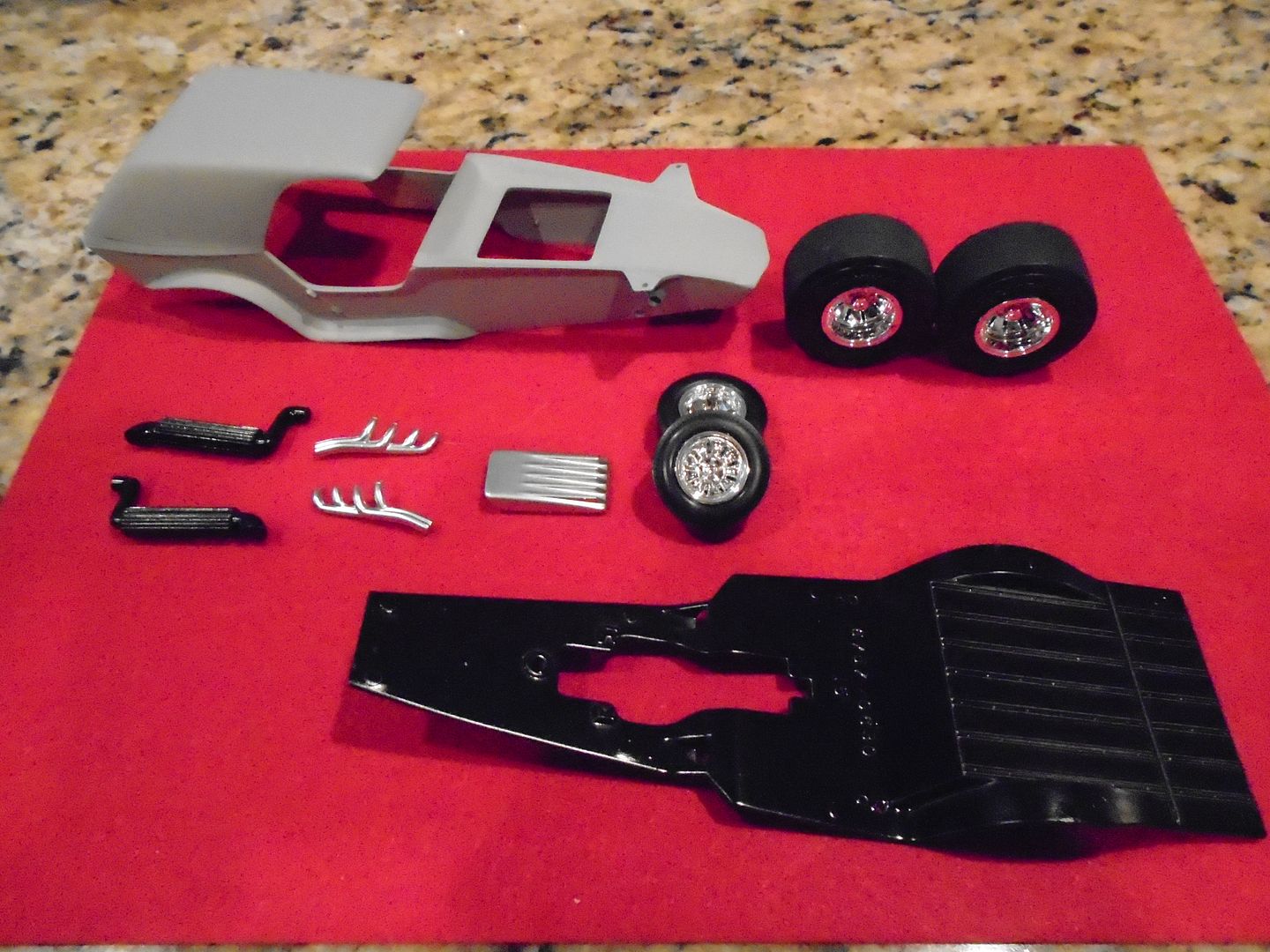 cobraman Posted December 30, 2015 Posted December 30, 2015 Normally I work on only one kit at a time but somehow found myself starting this while working on a Shelby Series 1. Going to be pretty much stock but I did fill in the pop up headlights and I will not be installing the gas tank "pods" that are behind the front wheels. Those mounting holes have been filled. Body in primer now and ready for me to decide what color to paint it.