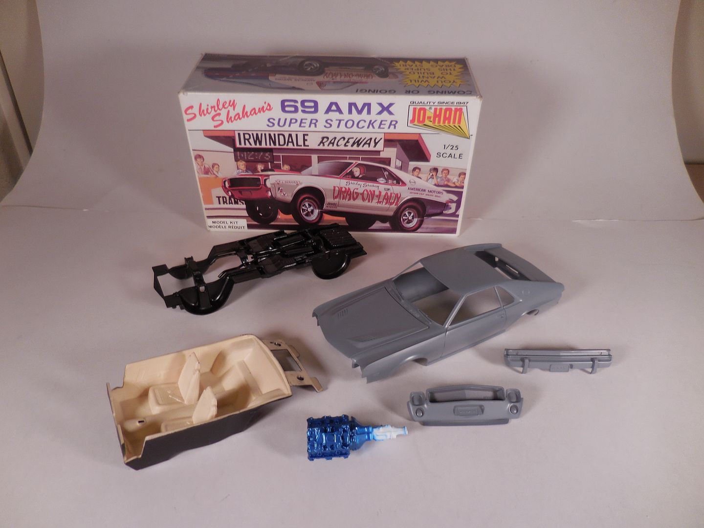Sport Suburban Posted January 1, 2016 Author Posted January 1, 2016 Here is another one that has been kicking around and I just need to finish it. I bought this one about 10 years ago when I was building other Johan 442's. It's a resin 72 Olds 442 convertible from Modelhaus. I even bought the W30 conversion kit at that time. I had to cast a few Johan parts to complete this build. I needed another radiator support and shroud to complete this. So this build has no real Johan donor parts. I am using the AMT 69 Olds chassis for the engine and chassis. I need to get this one done before I start any of the Revell 72 442's that I have. Here is a simpler conversion. 69 Camaro RS SS from Revell kit. It has a SS hood from an AMT kit and the exhaust from the Revell 69 Nova kit. It is in primer and the hood is fitted and fits well. Another Johan sourced kit is this 69 AMX. I wanted to build this one stock but needed many stock parts to complete it. Starting with the common race kit was a mistake. Hood is from Missing Link. Correct 69 interior was an eBay find. Chassis is stock style with molded in exhaust also eBay. Stock intake and exhaust is resin cast by me. Bumpers were stripped and front bumper molding added along with rear bumper guards. This is going to be a Big Bad AMX. Front spoiler added and I see them on many real cars but not factory correct.
