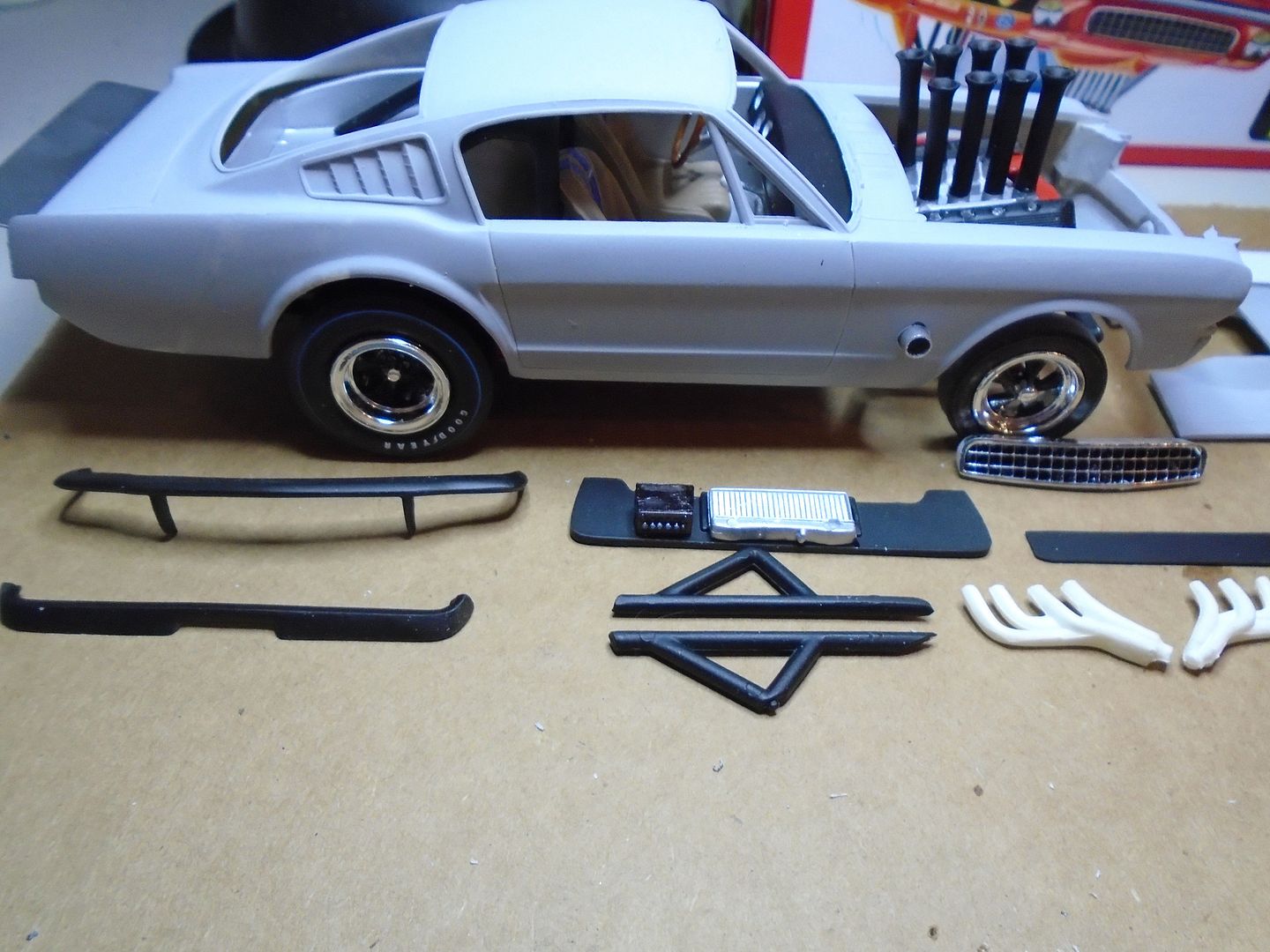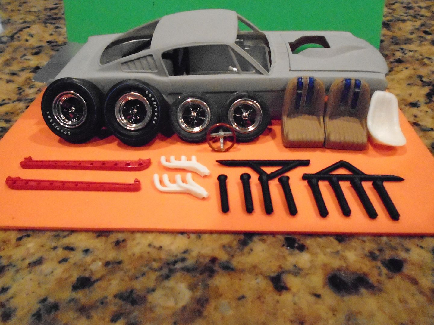 cobraman Posted February 17, 2016 Author Posted February 17, 2016 Here is another little update. Adding a rear spoiler to the car. Here you can see the unpainted seat that comes with these cars. Way under size IMO. Look more like a 1/32 scale seat to me. Ordered a aluminum pre wired distributor and have to wait to get that to finish the engine.