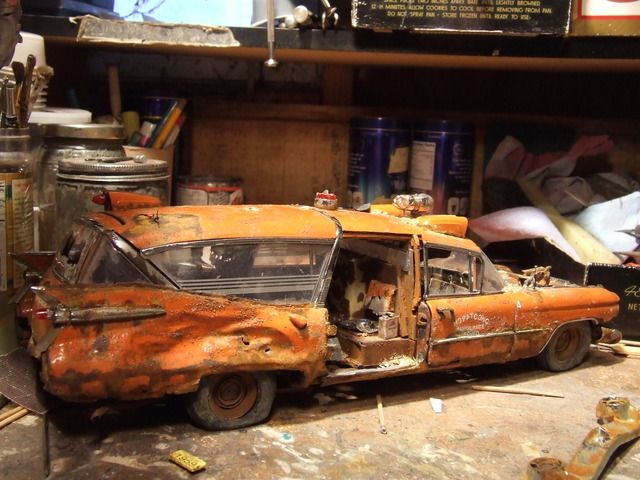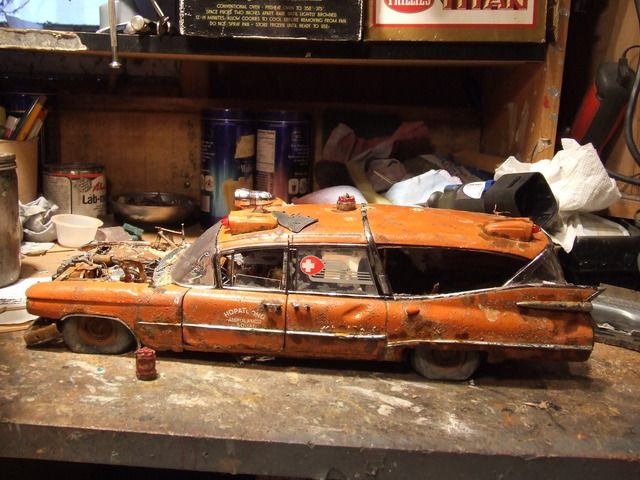 jerseyjunker1 Posted March 1, 2016 Posted March 1, 2016 i made this one to resemble an abandoned ambulance from the town i reside in. when totally finished it will have a scenery base. it's 1/18 scale.