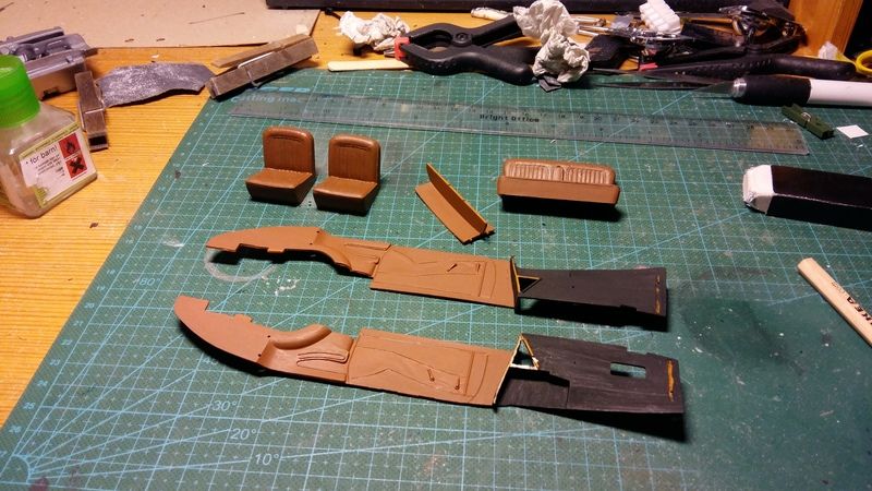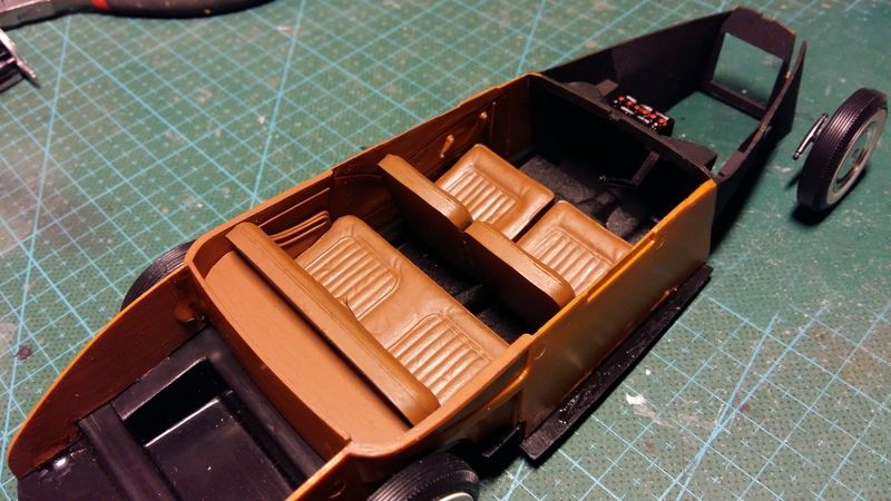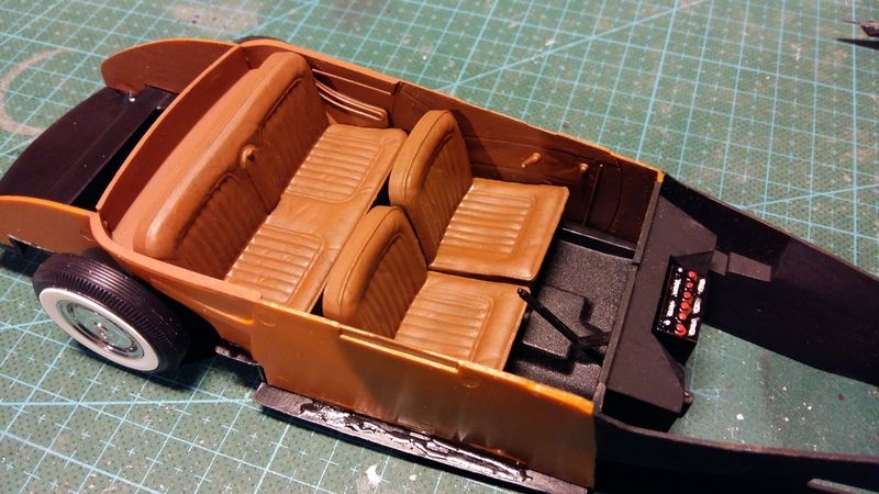 Bumblebi Posted August 20, 2016 Author Posted August 20, 2016 I like this. Unusual subject, unusual customization. Very cool. Thanks, it's indeed quite the unusual subject, but that's how I like them! I got the interior and engine compartment basically finished, that's the things that have slowed me down in this build, as it don't fall into place so to say... In the end, I had to use epoxyglue to hold it together. Some pics of the progress... I chose matt Humbrol brown for the interior, and a matt Humbrol black for the engine compartment. It wasn't the easiest thing to get together, and it took me a few times of trial and error to find the right method... Started with the rear seat and one side of the interior. After that I fixated the two interior sides with the rear seat between them and the floor plate underneath, epoxy glued it together. Then added the front crosspiece, and finally added the dashboard and the front seats. Turned out really nice and straight! A few bonus shots of the body with wheels underneath, its looking pretty good now!