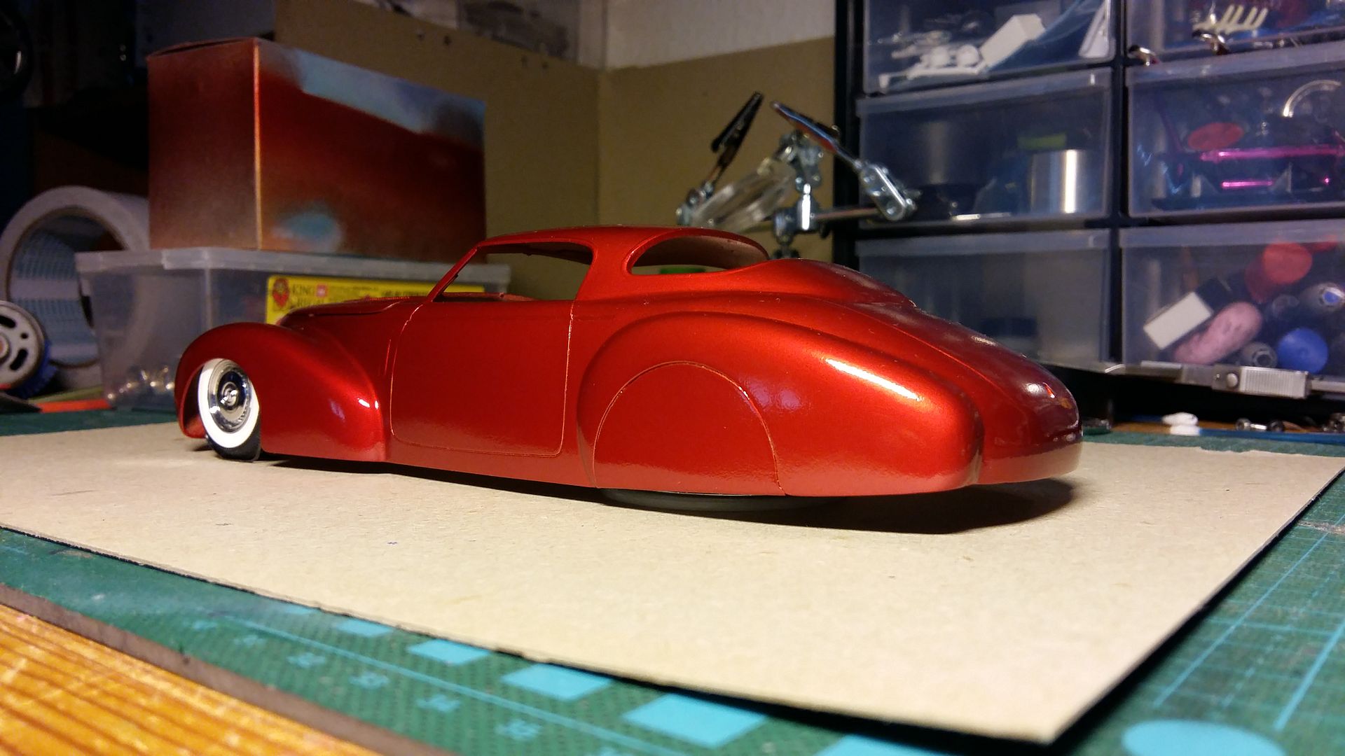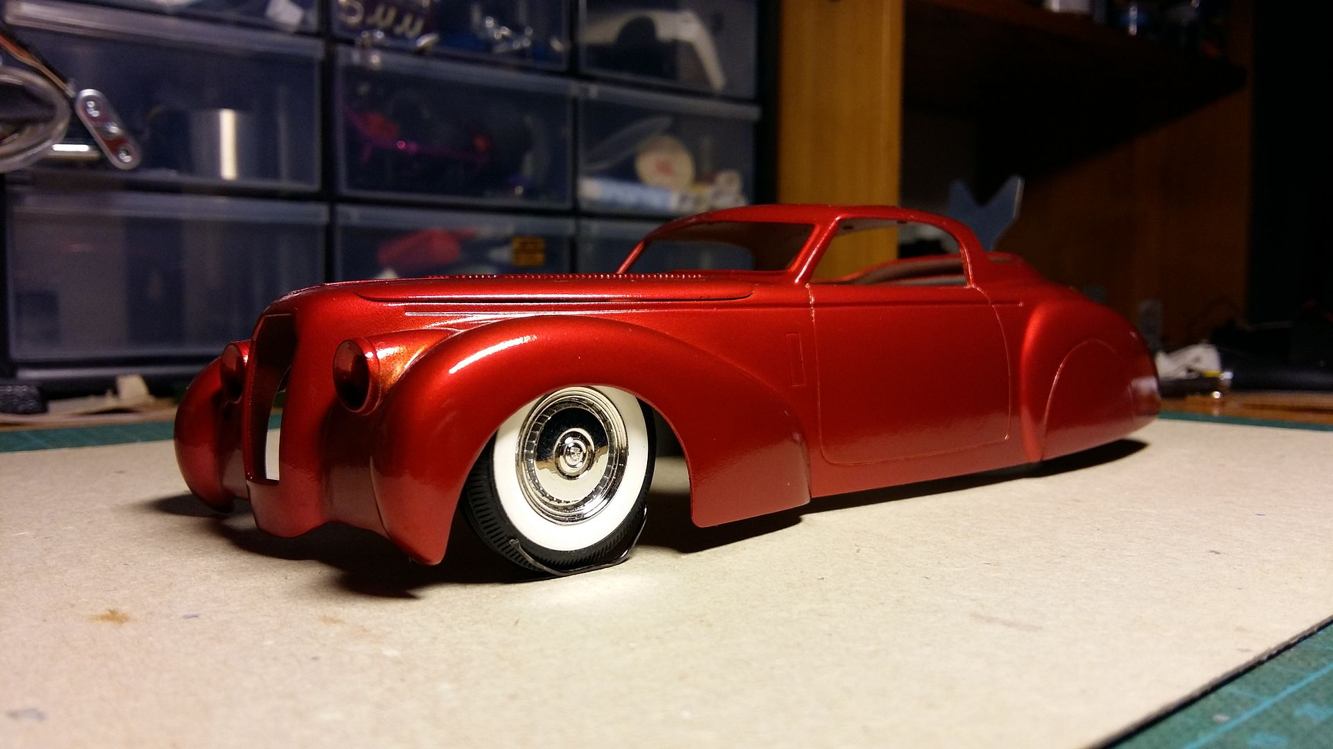 Bumblebi Posted September 18, 2016 Author Posted September 18, 2016 Beautiful, Johan, I can sense the relief when a paint job turns out, especially as nice as yours did! Thanks Paul! Here are a few mock-up pics of the car. Wheels are straight off of the Monogram '56 Ford T-bird and this is the final stance it will have!