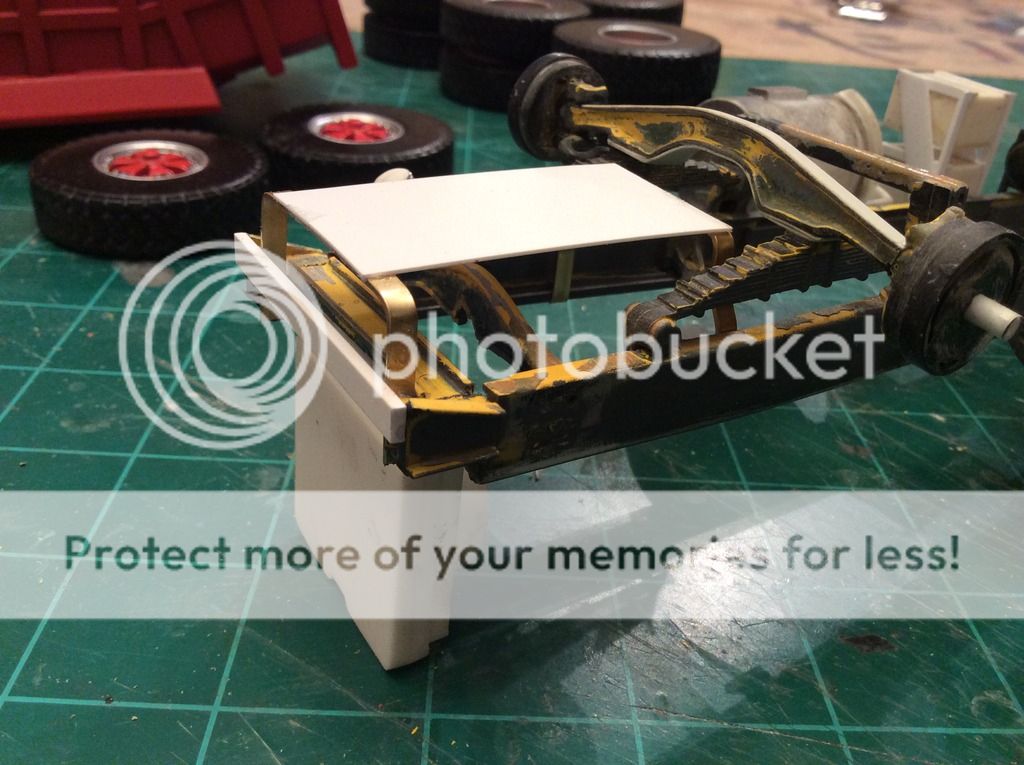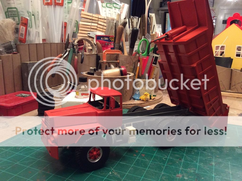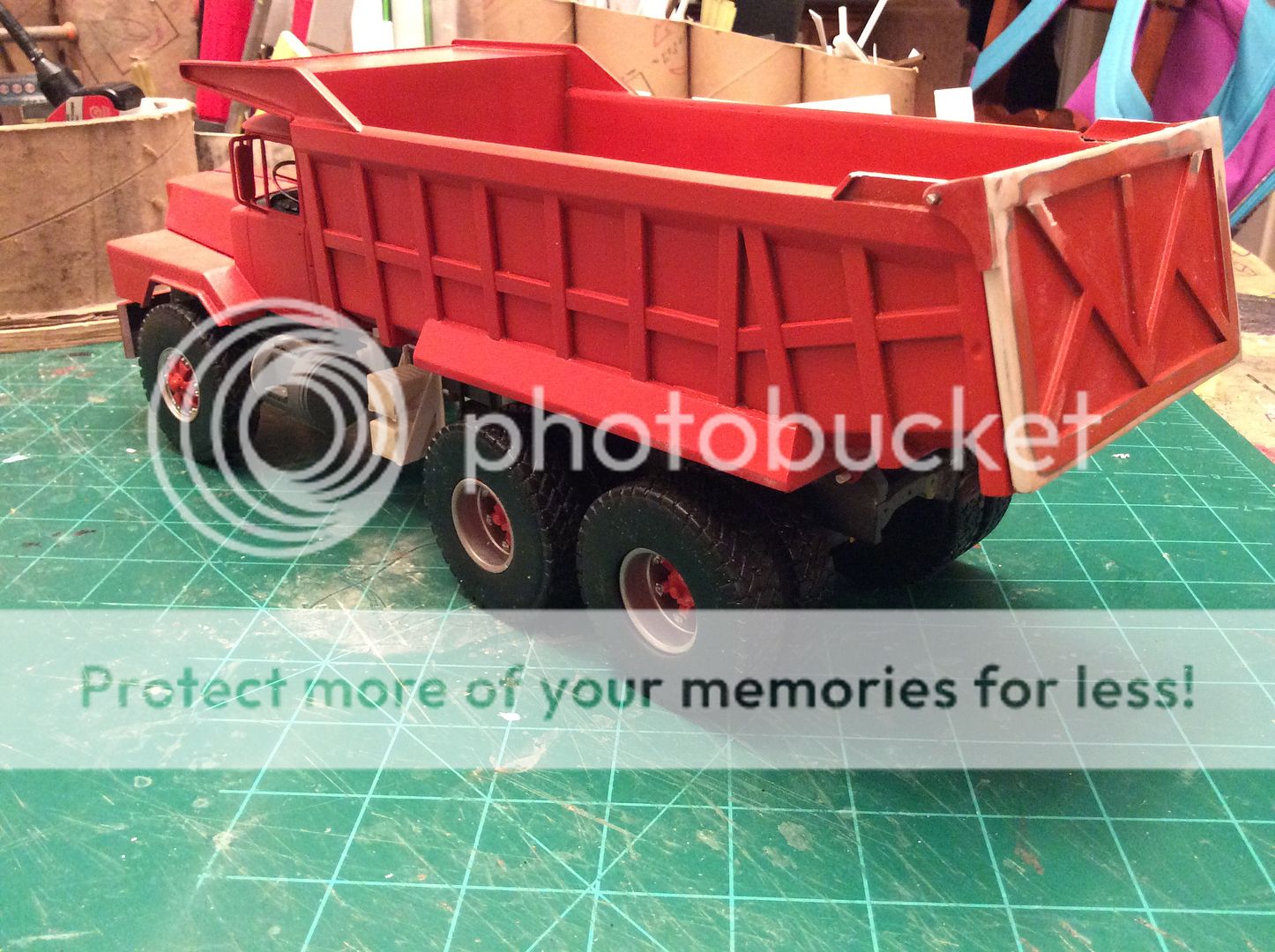Superpeterbilt Posted June 10, 2016 Author Posted June 10, 2016 After much sanding, a paint mishap, stripping it, and more sanding, I finally got some paint on the dump body. I still just have some chassis details to finish up such as, brake cans,drive shaft, steering linkage, and a few other things. I made a rock guard for the engine using brass strip and styrene sheet.