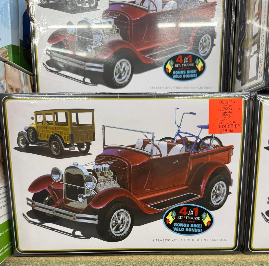 FoMoCo66 Posted 3 hours ago Posted 3 hours ago 50 minutes ago, oldcarfan said: I recently bought their Lamborghini Diablo kit, the first time I've one since they first came out. I'm looking forward to doing something with it. We went back today for some stocking stuffers and I almost got this one. I assume its the old Revell kit? Nope its actually an old AMT (truly a MPC kit. The original edition was in 1964 with the tudor sedan, the body was emedietly replaced with the woody and truck in the next release. Its not a bad kit, but just be warned, the frame is one with the fenders, but thats not a big set back at all. I was at my LHS recently and they had this kit for $40 (I dont buy kits from them because there so darn expensive). Heres a rebuilder I scored of the original issue of this kit with the sedan body (I dont think the Halibrand wheels are in it anymore though). 2