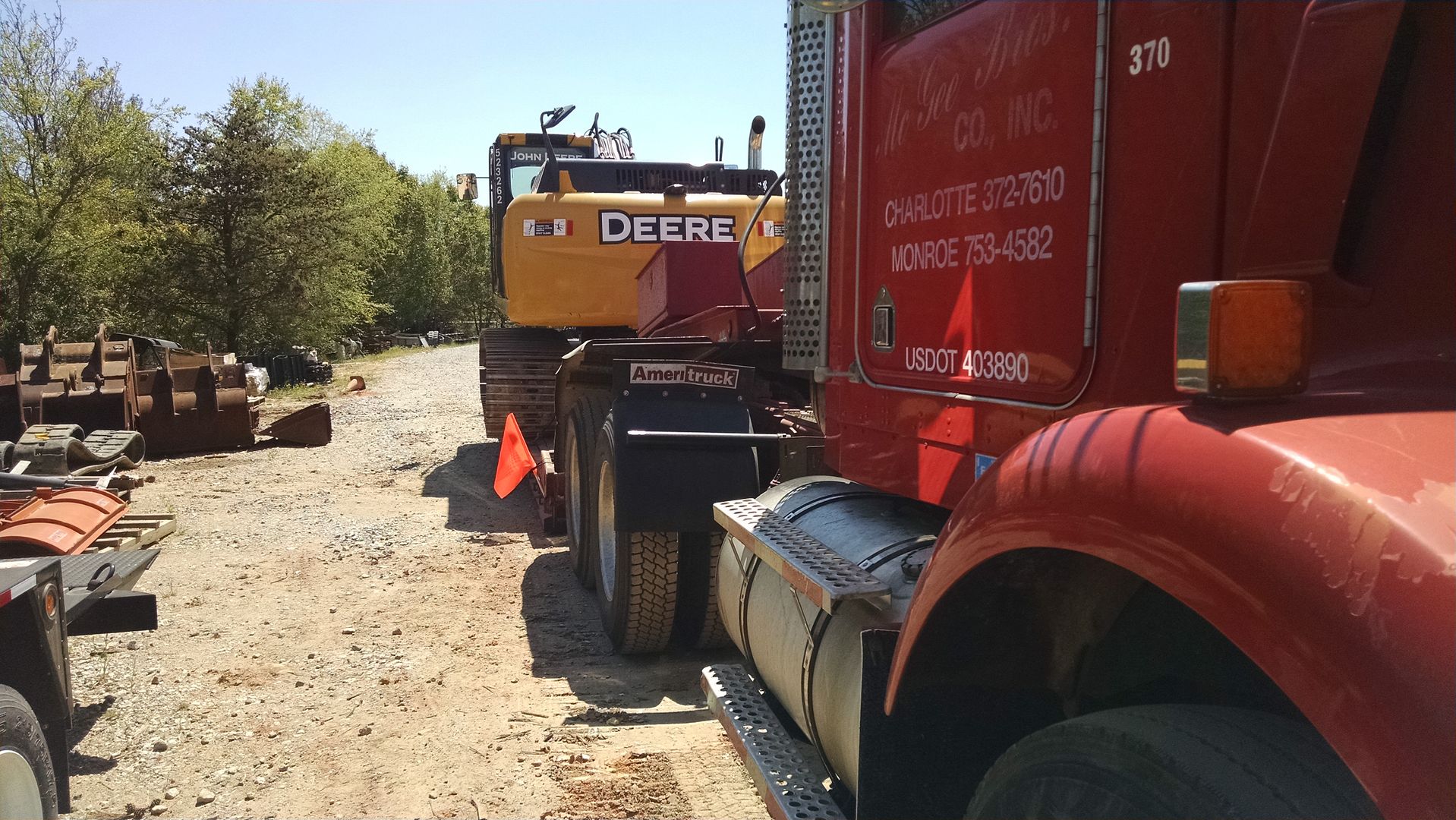 guitarsam326 Posted April 29, 2016 Posted April 29, 2016 Just a couple pics of my personal biggest haul yet. A John Deere 210g lc. Weighs 49,000 not including the hammer. I would guess the hammer is another ton. Anyway here she is.
