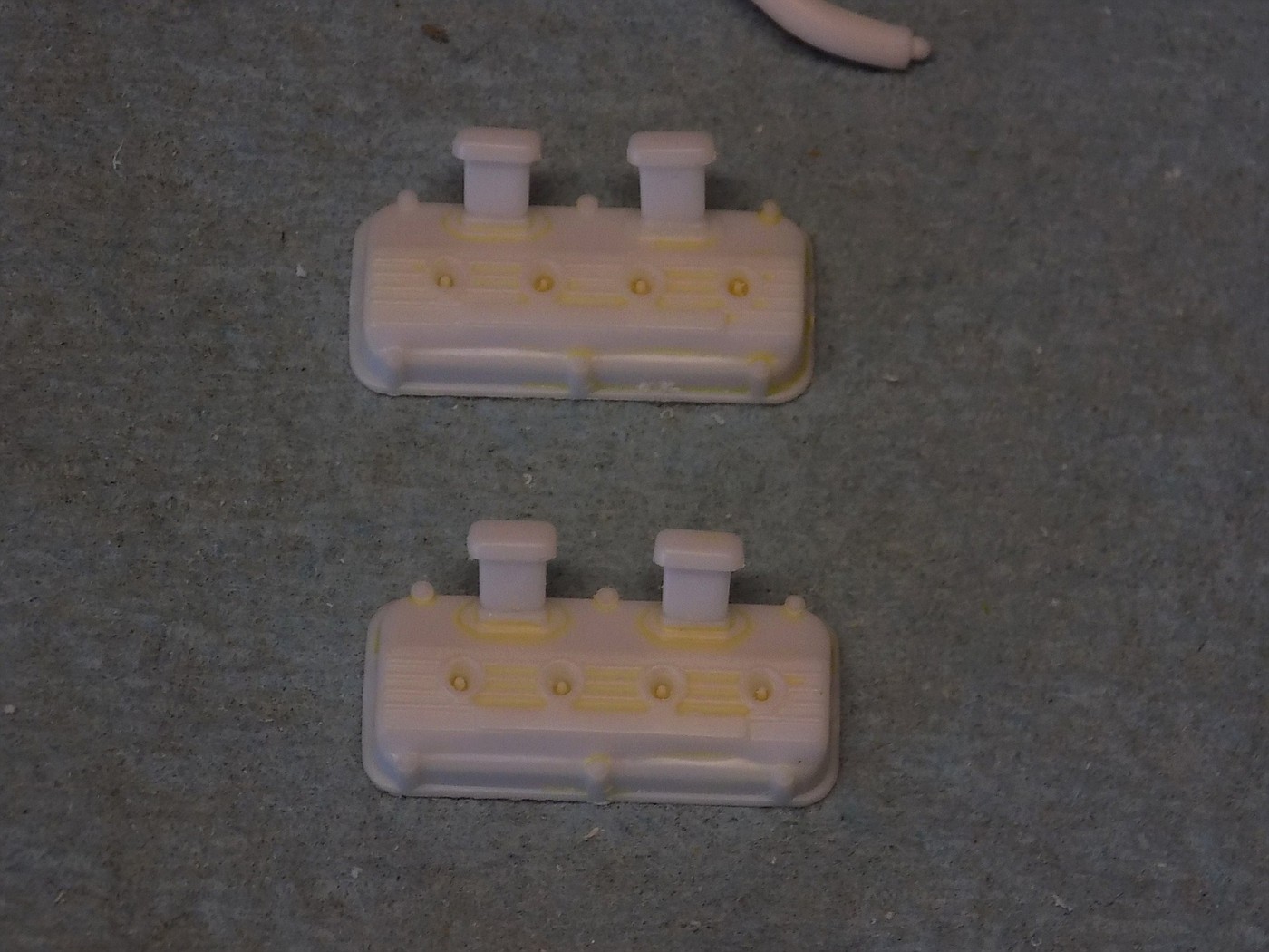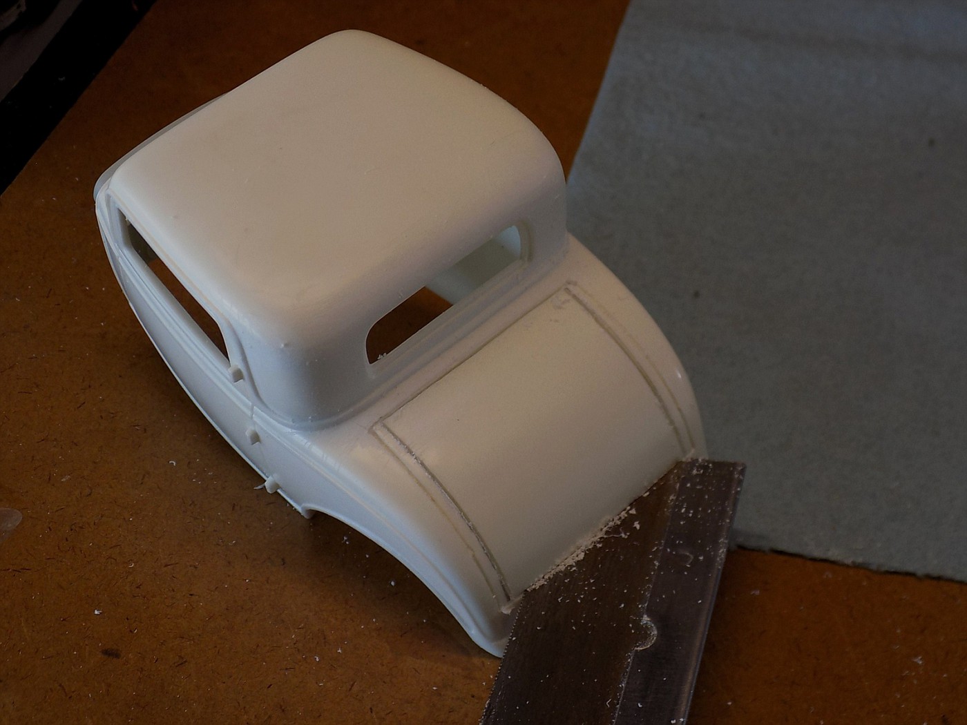 Dennis Lacy Posted May 8, 2016 Author Posted May 8, 2016 Had some free time this afternoon so I spent a couple of hours on this. To start off, I decided that the body looked a little plain so I fit the louvered trunk lid from Revell's '32 5-Window. A 3-Window has a wider lid and the curve of the rear of the body isn't as sharp as a 5-Window. I used the lid as a guide to mark the horizontal cuts then re shaped the lid to match the 3-Window body curvature by manipulating it by hand. The plastic is pretty soft and re shapes easy. Hosted on Fotki Hosted on Fotki I also smoothed out all those nasty mold parting lines that a couple of you pointed out. Hosted on Fotki I then turned my attention to the back end of the frame. The gas tank was cut out previously and the rails shortened to just under the lip of the body. I cleaned up that area, added a frame spreader bar made from .080" rod and made a floor panel out of .040" sheet. I also added the cool little nerf bumpers from the 5-Window. Hosted on Fotki These are the valve covers from Revell's Mazmanian '41 Willys. They are the same M/T design that comes with the Hemi I'm using from the 5-Window but have the really cool Moon breather stands. I figured these paired with the 6-carb intake should make the engine look plenty tuff. Hosted on Fotki Here's some mock ups after today's work. All of the chrome has been stripped from the chassis components. I also added a frame spreader bar to the front made from .060" rod. I put together the really nice Moon auxiliary tank from the 5-Window and propped it up to see how it would look. Should I leave it? Hosted on Fotki Hosted on Fotki Hosted on Fotki Hosted on Fotki Hosted on Fotki