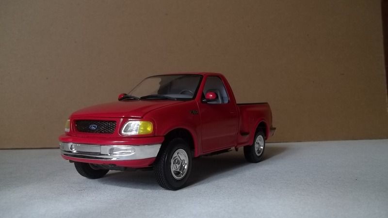 dshue76 Posted May 27, 2016 Posted May 27, 2016 (edited) Just finished this yesterday. Its the Lindberg F150 Flareside 4X4 . The kit is very good for the most part. The decals tend to have too much excess around the edges. I used the rear window decal from the Revell F150 kit. I have started on the Revell F150 and I think the Lindberg kits are better in the detail department. Edited May 27, 2016 by dshue76