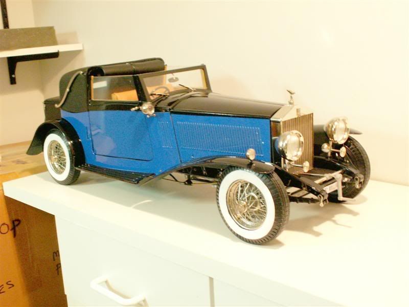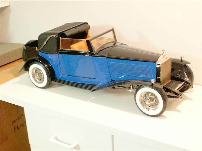 Mike C Posted June 2, 2016 Posted June 2, 2016 Actually, this RR isn't mine. I was commissioned to finish it. Two builders before me started on it and it didn't get finished. I was living in FL at the time and belonged to a club down there. The club pres. was at my place and saw my Pocher Bugatti Type 50T I had built. I had built it in '82. He said he never saw a completed Pocher and said I had done a good job. So he told me about the RR kit that was started. AND he said I would get paid $750 to finish it. So I went for it. Plus I had got laid off my job not long after that. This was in 2005. I remember that the gas pedal linkage was not assembled correctly. The chassis and engine were pretty complete. The spoke wheels had to be built. The body was painted but I had to repaint a door. And I should add the owner lives in a community across the highway from my parents. We're still in touch too. He sends me jokes and I send him pictures of the models I've been building. So here's the pictures: