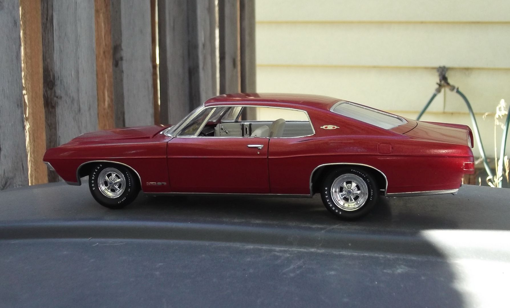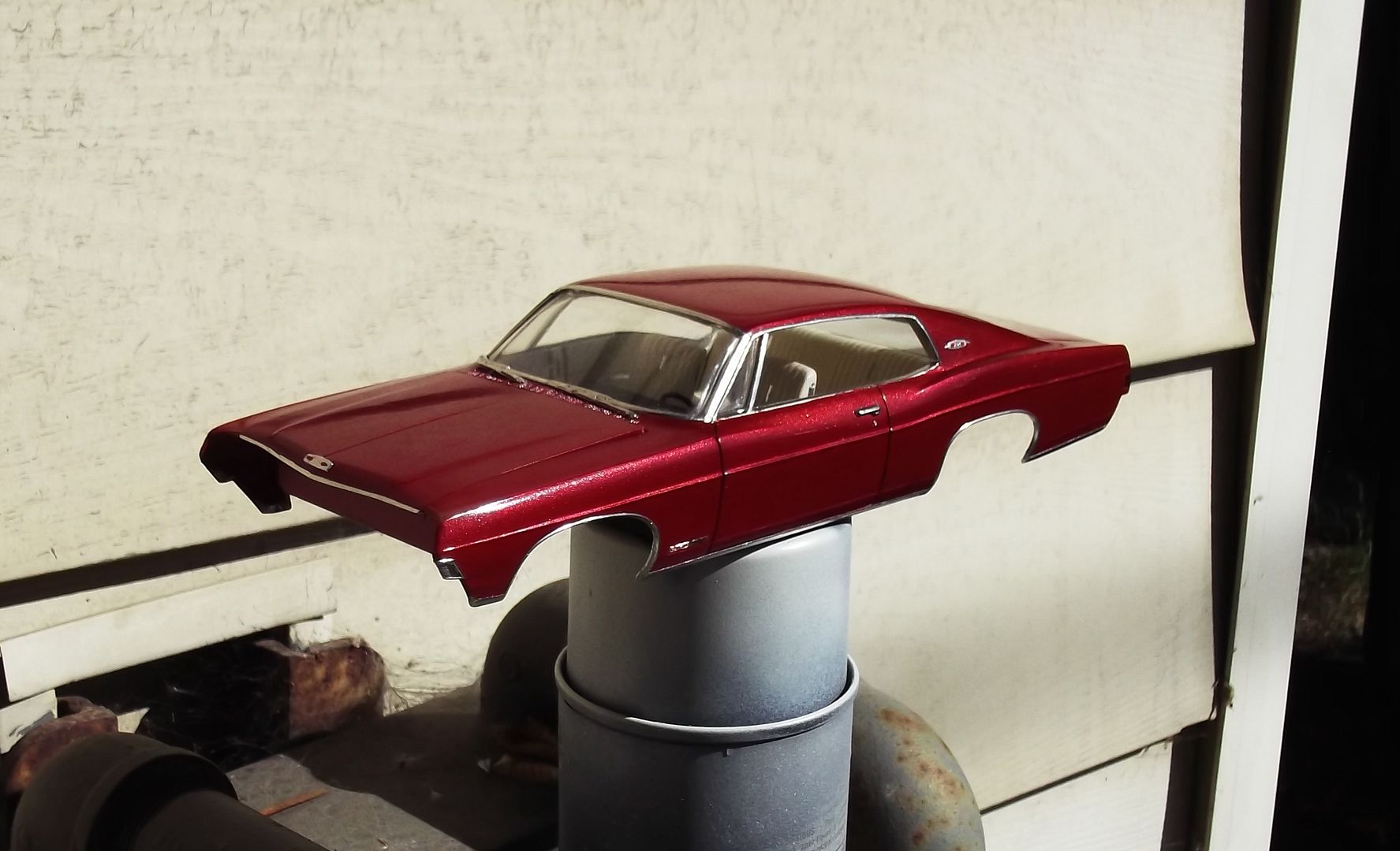 And here's the body, marker lights and emblems painted with the glass in. I've been hunting high and low trying to find the set of Firestone pad printed radials I bought last year. If I can't find 'em then I'll just use the kit whitewalls, as they're still in mint shape.
