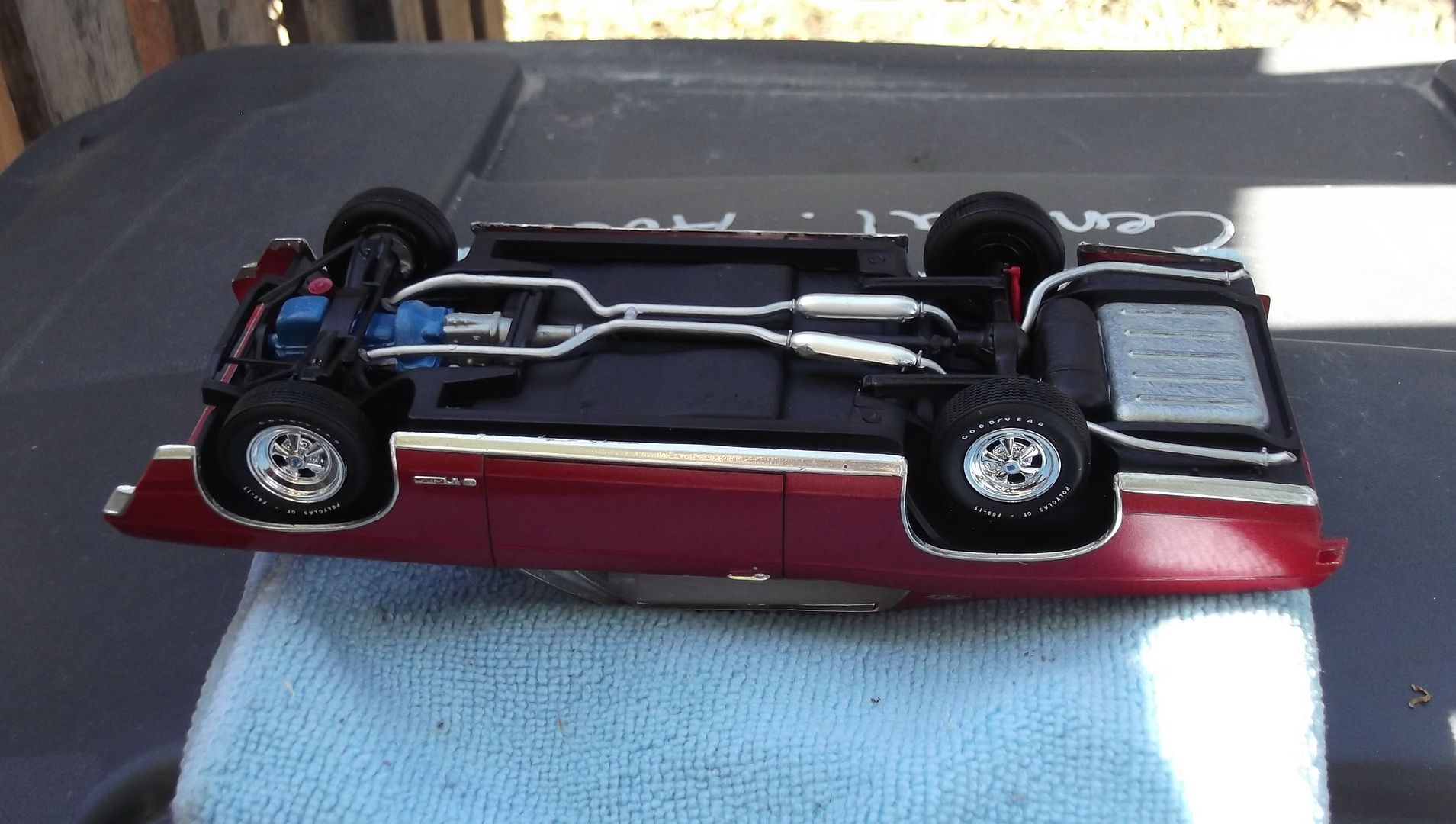 The five spoke rims are from the Revell ' 70 Torino GT kit. Now, it's time to start gluing all the bits to the bottom! ;)