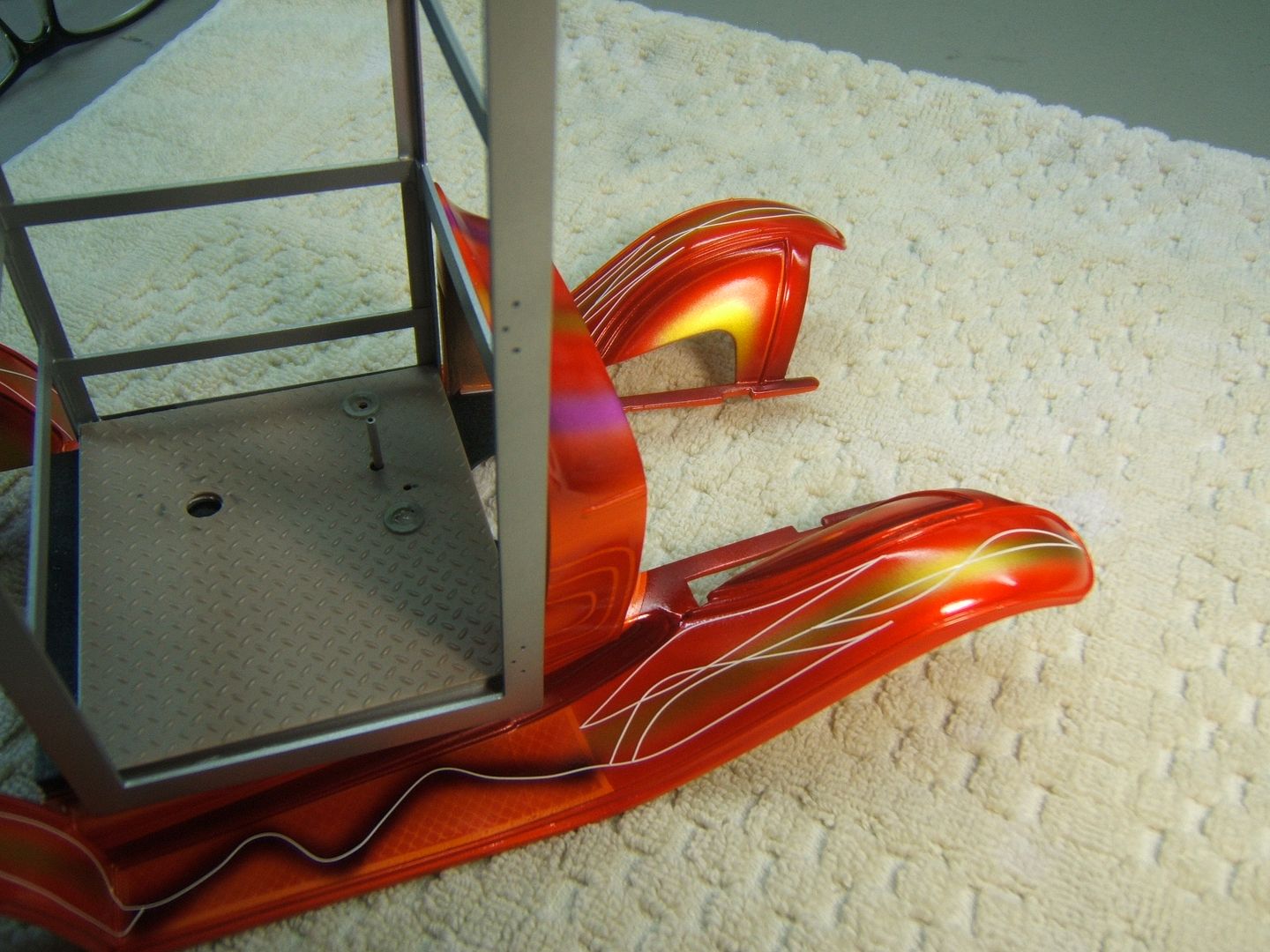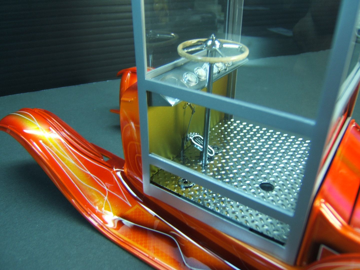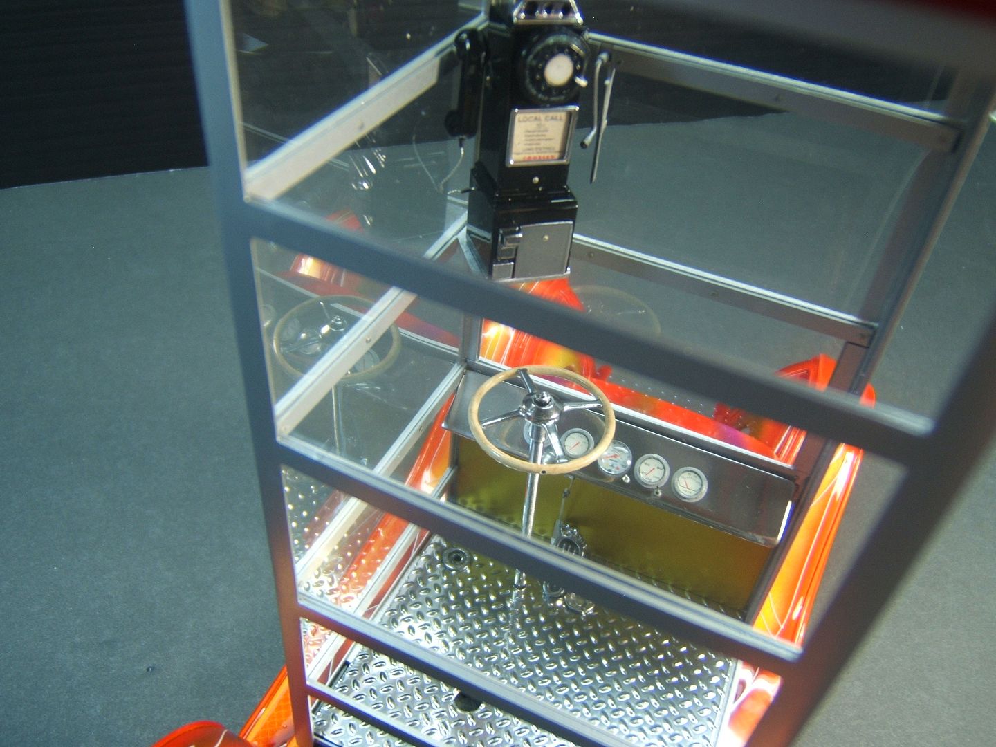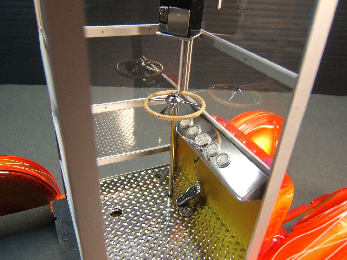 John Teresi Posted August 27, 2016 Author Posted August 27, 2016 (edited) Hello.......thank you all so very much for the kind comments........I really do appreciate them.......I got my decals from Gary with GWS decals.....thank you Dave Ryberg and Gary for the collaboration on the decals........I got a clear coat over the whole body......I need to sand it down smooth one more time for a final coat of clear.....I also made some Besels for the gauges and used Slixx decal gauges.......I made some winshield wipers ...........I used "Pro Tech" nut and bolt ends for the Booth and a throttle linkage.....I got the glass instaled ,and attached the dash board, gas pedal, steering wheel,telephone and winshield wipers........I painted the diamond plate floor, dash board, foot gas pedal, and steering wheel chrome Alaclad with a hand painted wood grain steering rim.....thanks for looking. Edited August 27, 2016 by John Teresi