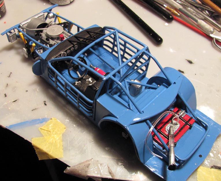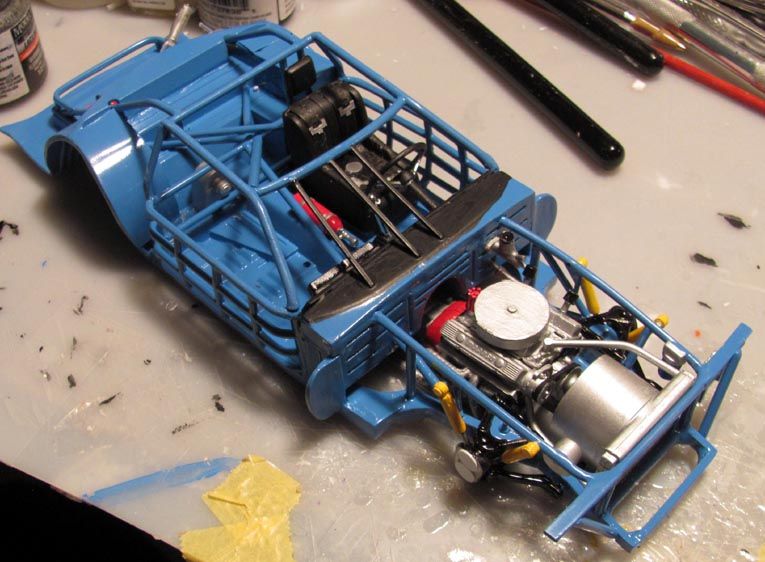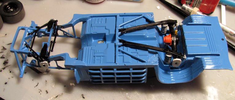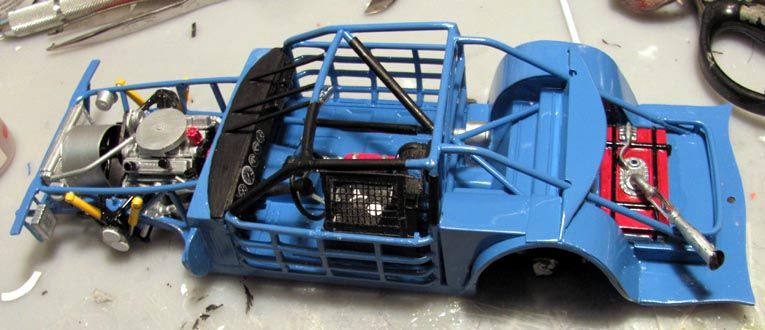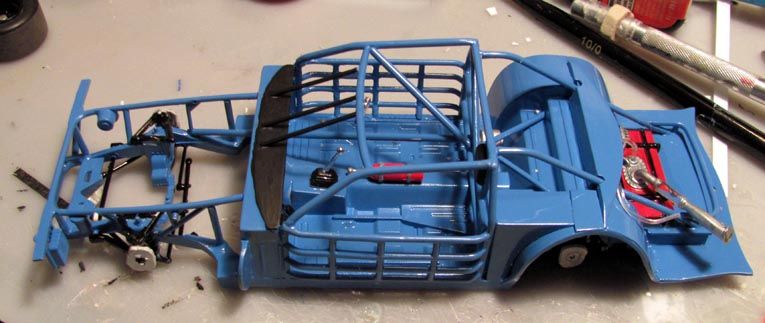 All I need is to black tape some of the chassis bars add a window net and add the tire assemblies and the chassis will be done. Oh yes, and reinstall the inside mirror.