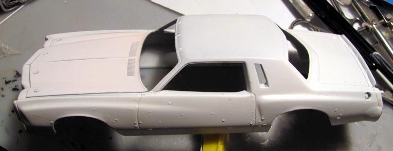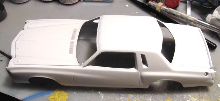 As you can see I did not spray enough coats of the metallic silver and the red body bled through to the white primer. I will have to add a few more coats. the roof looks okay but the hood is really pink.