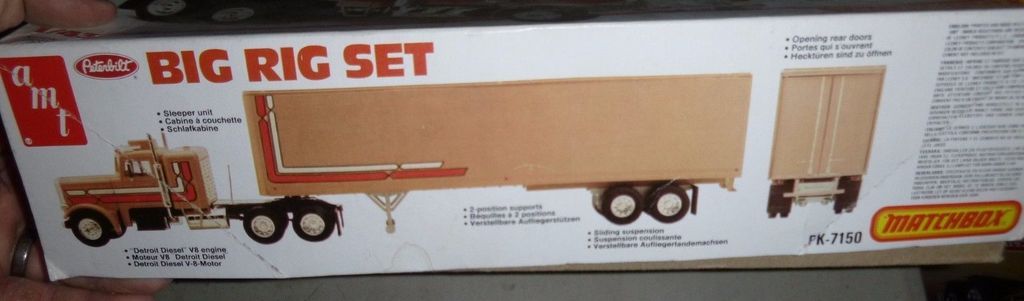 highway Posted July 27, 2016 Posted July 27, 2016 I bought this kit probably 10 years ago for somewhere in the neighborhood of $20 to $25. I'm not 100% sure, but it is at least very similar if it isn't a Heller reboxing of the old AMT 1/43 scale semis like this one currently on eBay with a "Buy it Now" price of $59.99. I'm sure that some probably think the $20 or so was steep for the Heller, and $60 is insane for the old AMT, but as many has said, some of these small scale kits pack a big punch in detail in a small package. The AMT as does my Heller (the reason I think it may be the old AMT molds, also saved a pic of the box contents of the AMT to compare to the Heller when I have more time) has just as many and if not more parts as their 1/25th scale counterparts and even include engines just as the 1/25th scale version does. In my opinion, especially for those of us who build big rigs but may have space constraints, even the $60 for the AMT on eBay is not bad considering that the same combination of the Pete 359 "California Hauler" kit recently reissued and the Freuhauf van released a few years ago are probably running around $30 a piece (if you can still find a trailer on a shelf somewhere) and the 1/43rd scale has the same level of detail as their bigger brothers and takes up much less space.