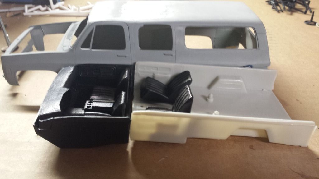 Havamodeler Posted October 19, 2016 Posted October 19, 2016 (edited) Hi guys. Im Derek and welcome to my workshop! So Im new to the site, I've been checking things out as a guest for a bit, and i liked a lot of what I've seen, and thought I'd finally start an account and share too. Been building models for a while, started around middle school and all thru high school, then i had a few years hiatus, and then worked on a few here n there, and now finally have had some time n space to get back into it again. Right now my current project is a bit of a first for me: splicing 2 bodies from 2 kits together. I started off wanting to build just a k5 blazer, but after opening the kit, i quickly decided i wanted to build something with more detail and this curbside kit just wasn't gonna cut it. So after a debating about it, i decided i was gonna chop up the blazer some more and splice it into the back of a pickup cab n make a 4x4 suburban I wanted to use the '75 front clip, so i had to swap n splice the corners of the front fenders for the correct body lines. This is about the point i figured out the one problem that will continue to plague me in this build: despite both kits being a 1:25 scale, they're not exactly the same dimensions. I had to cut the center and remove maybe all of 1/16 inch, if that. And i couldn't fudge it even that much, so i had to cut my grille, deciding to just remove it all, leaving just the trim and headlight bezels. Next, I needed to move up the rear wheel wells to the correct wheelbase. Then, time to fill in everything. Fill in the lines for the Blazer's removable shell, all the joint lines between the two bodies, all the fenders and the roof. ....ooohh the roof. Remember my size difference problem? Well it was in the roofline that its reared its ugly head again. Luckily, in my endeavor to fill in the oddly placed sunroof, i was able to sand and fill enough that it tapered the mismatch enough that i can live with it. After days of sand, fill, dry, repeat, i think im nearly done with the body work. I just need to source some extra plastic to reform the rear side doors a little better and rebuild new drip rails. Next up will be interior. I hsve a pretty good idea of how im going to set it up, but I need some more materials before i can make more progress unfortunately. Thanks for lookin'! Edited October 19, 2016 by Havamodeler One pic didnt link correctly. Forgot to link another pic.