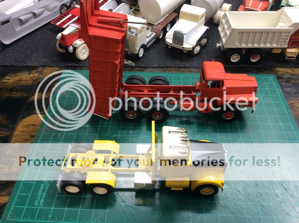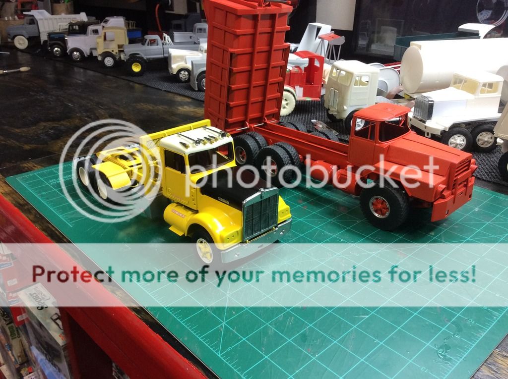Superpeterbilt Posted December 30, 2016 Posted December 30, 2016 Man, I really love that DM800 rock truck. Where's the tires and bed from? Thanks. Its a R800 Australian model. The cab is in the center. The bed comes from the Italeri Freightliner kit, but they also put it in the DAF kit. Neither one is easy to find. The resin wheels come from AITM. They are 14x24 8 spoke front and rear.