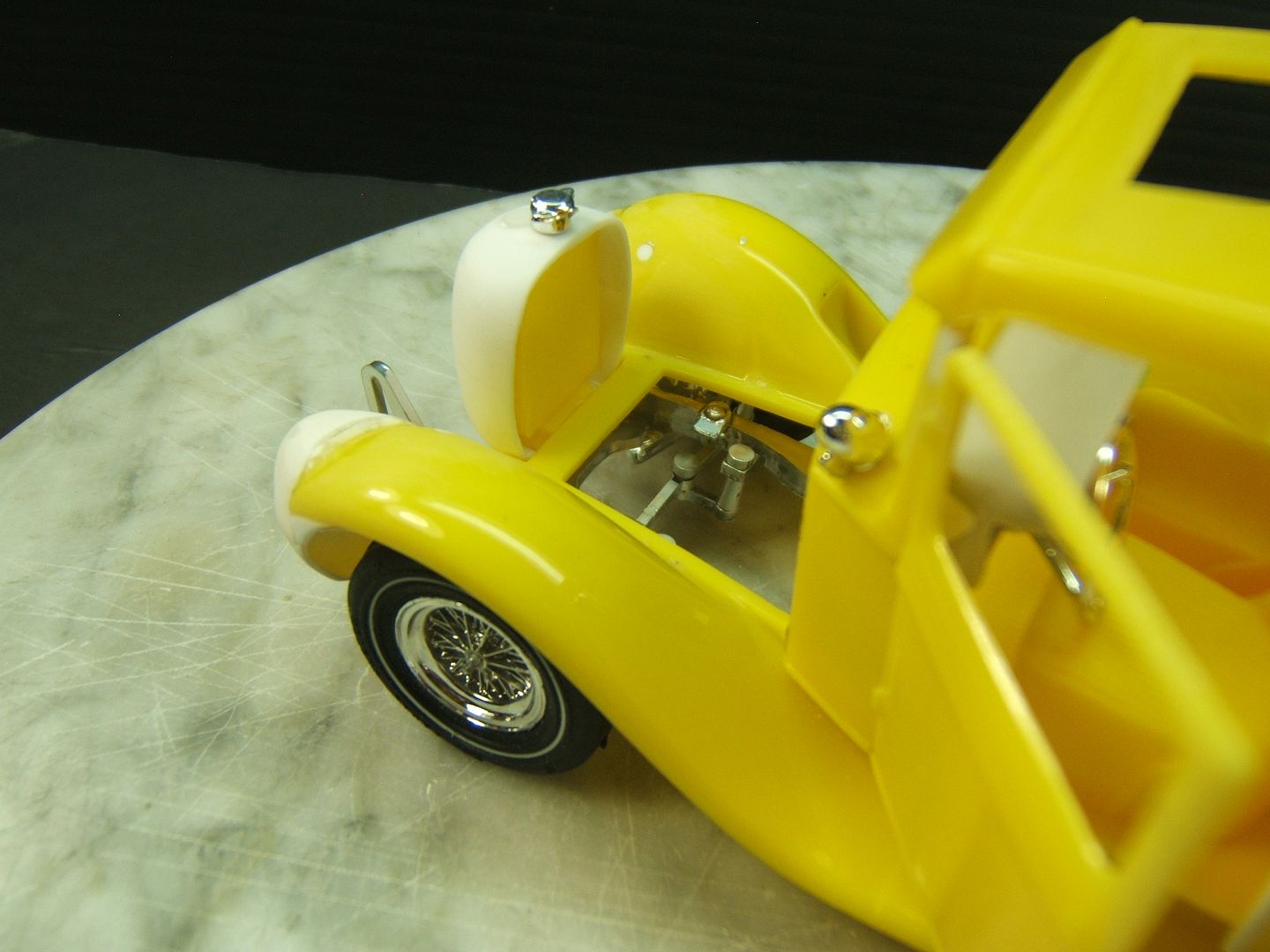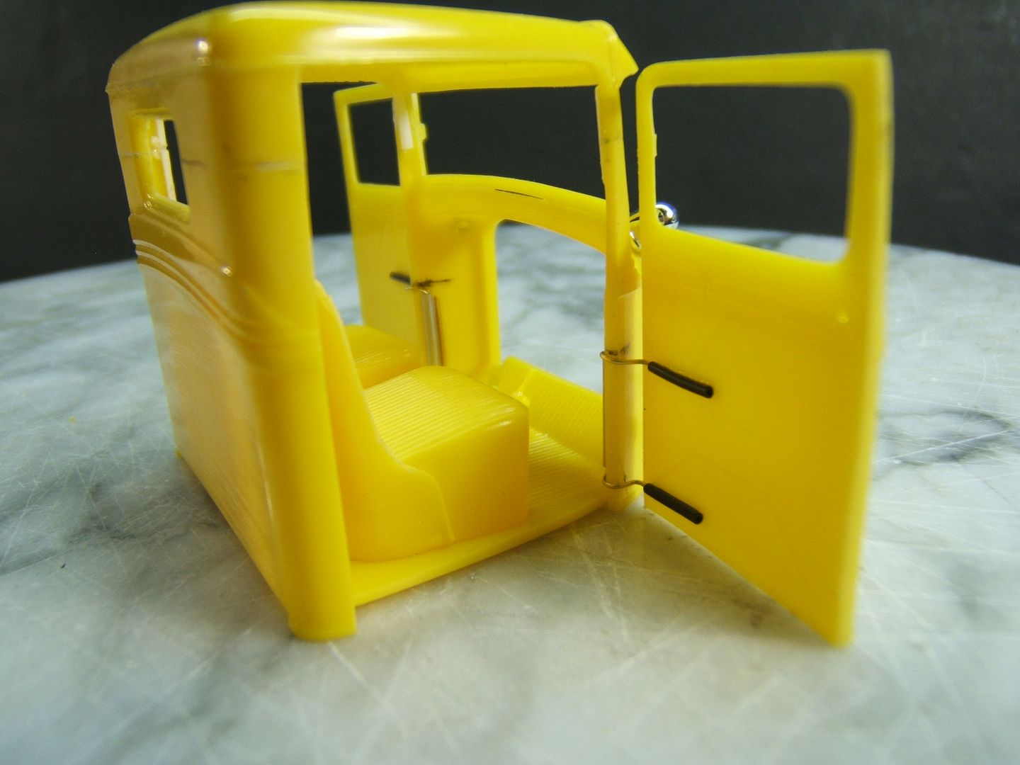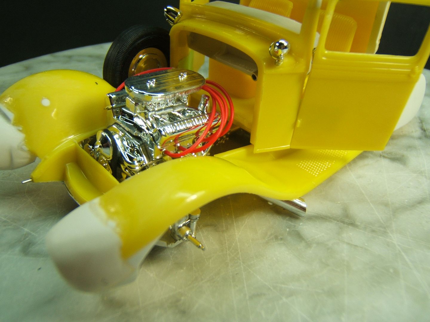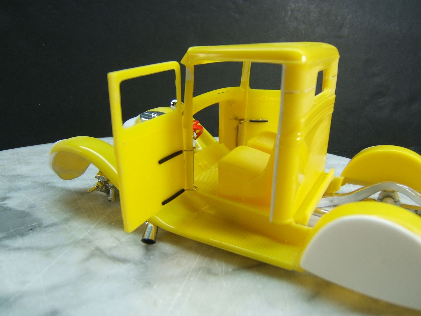 John Teresi Posted February 10, 2017 Author Posted February 10, 2017 Hello.......thank you all so very much for the kind comments......I really do appreciated them.....I mocked-up the engine.......and dug out some muffler ends from my parts box and modified them to resemble the ones on the original model.......I also hinged the doors....... and just for "Shits and Giggles" I made a test door panel with the initials PP......I used white Naugahyde and cut out the PP and used a red velvet backing like the way Pete made for his original model.......thanks for looking.