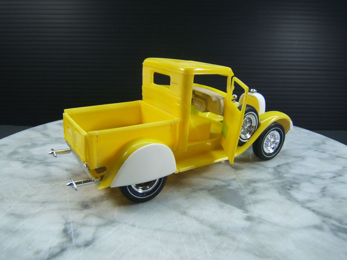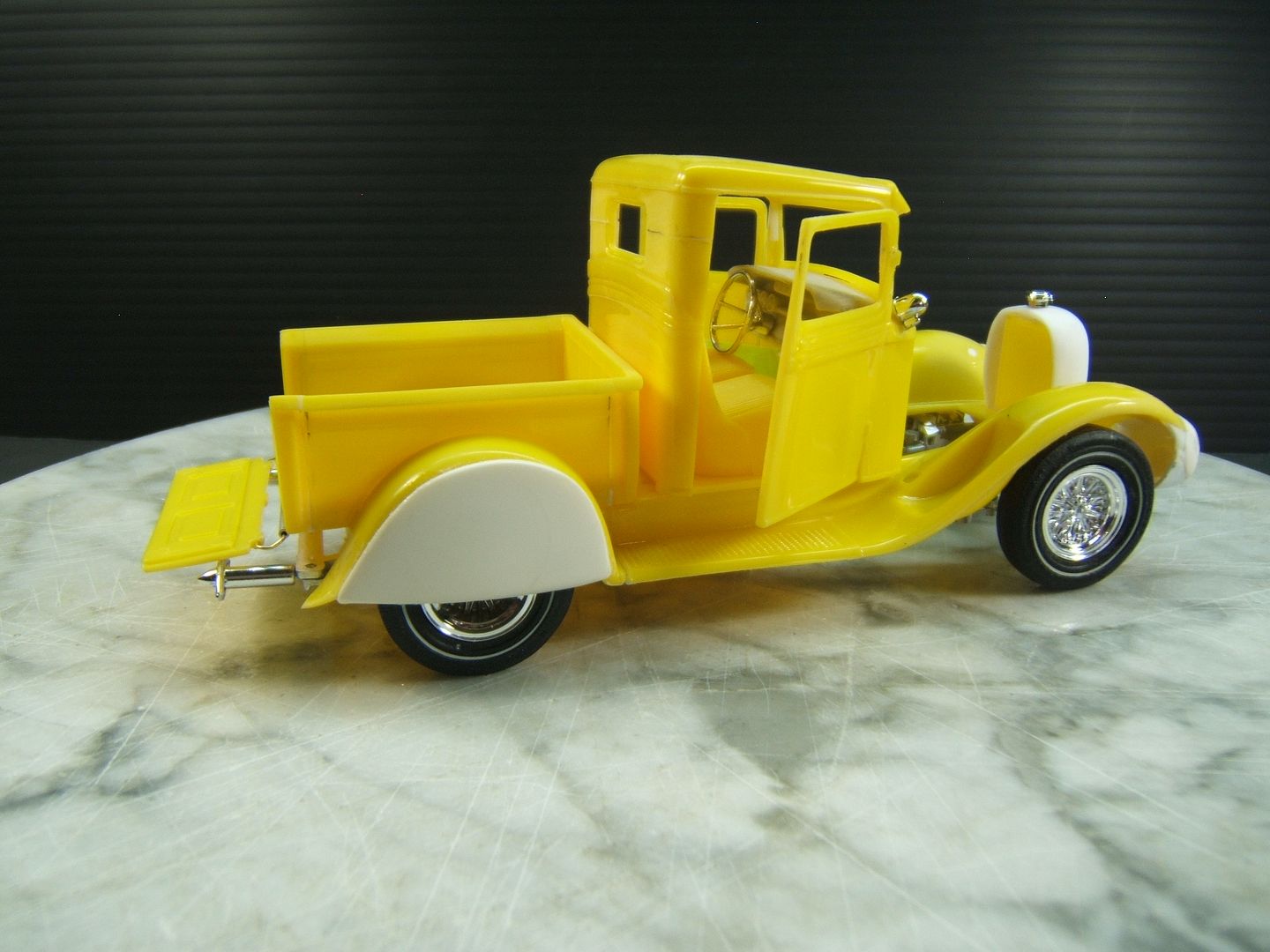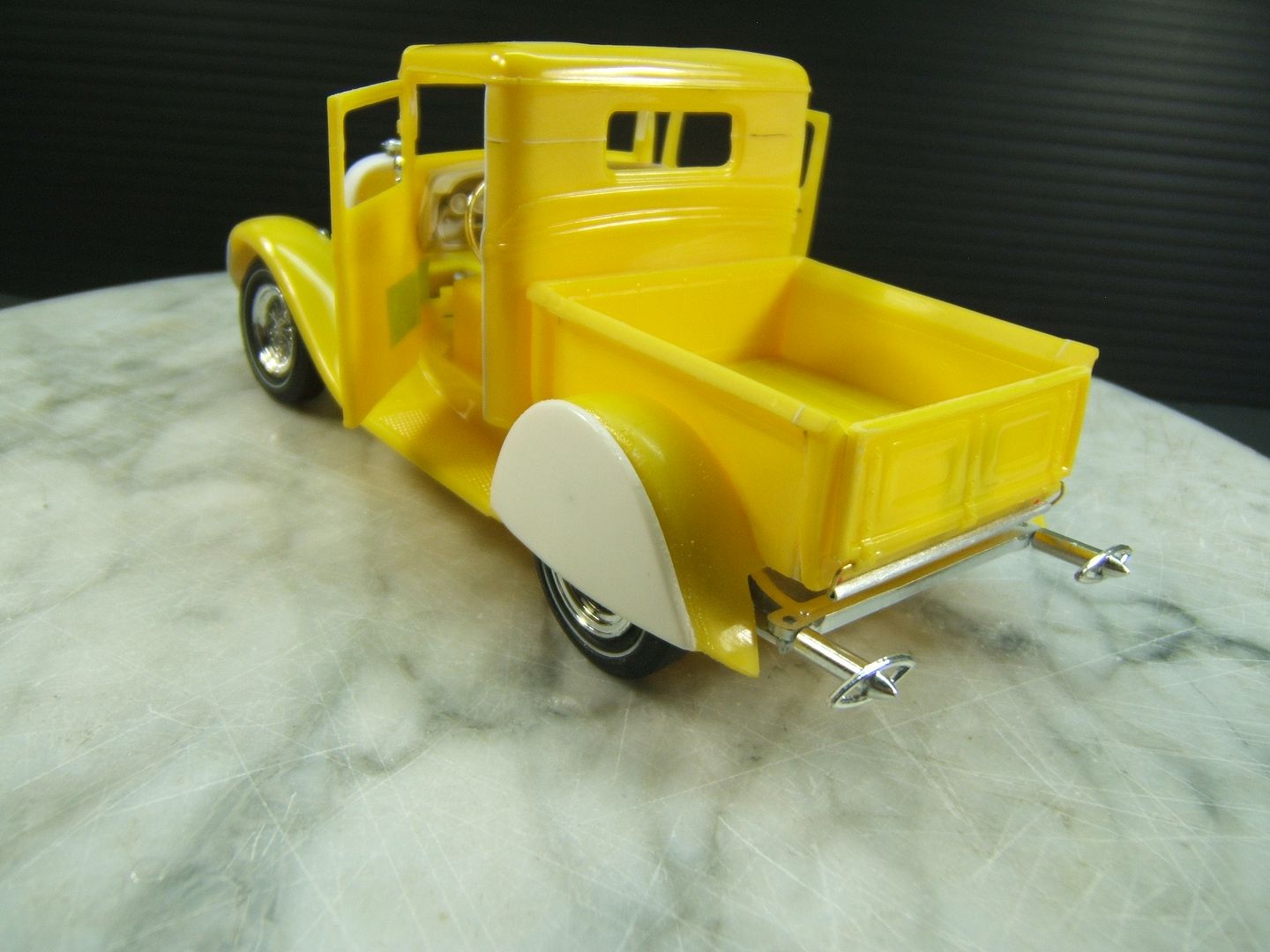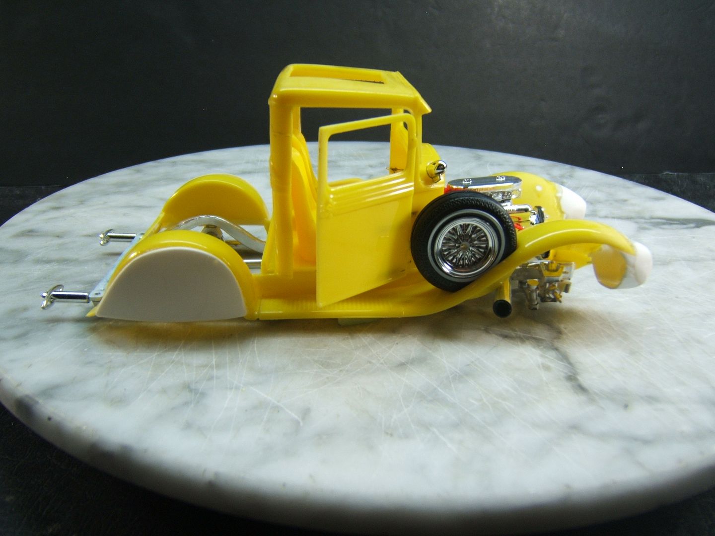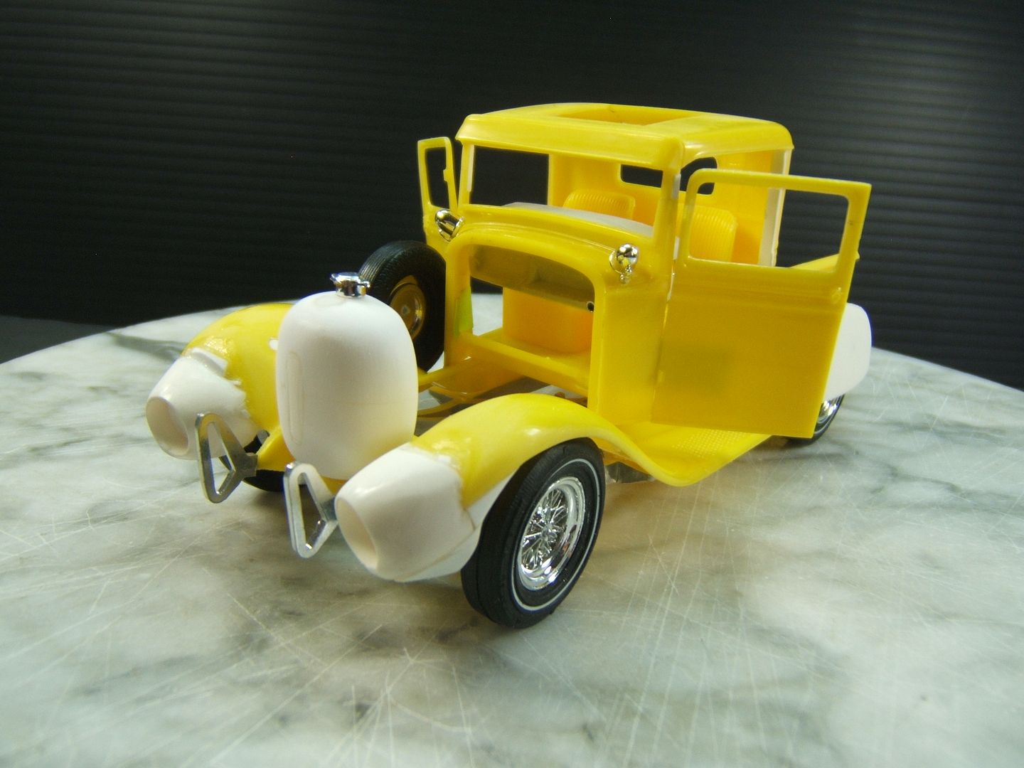 John Teresi Posted February 10, 2017 Author Posted February 10, 2017 Hello.......thank you all so very much for the kind comments......I really do appreciated them.....I mocked-up the engine.......and dug out some muffler ends from my parts box and modified them to resemble the ones on the original model.......I also hinged the doors....... and just for "Shits and Giggles" I made a test door panel with the initials PP......I used white Naugahyde and cut out the PP and used a red velvet backing like the way Pete made for his original model.......thanks for looking.