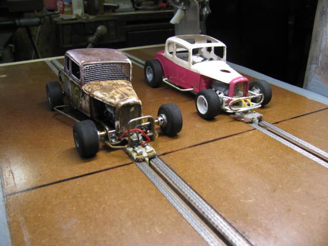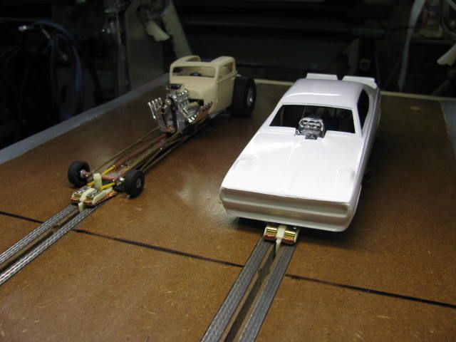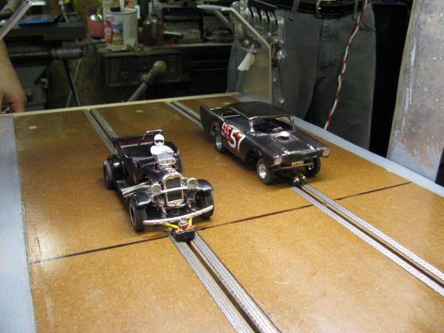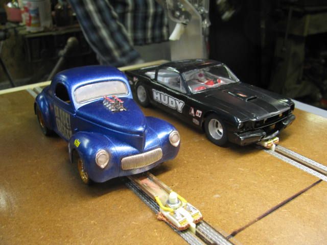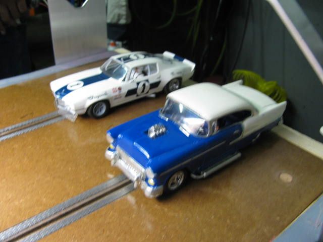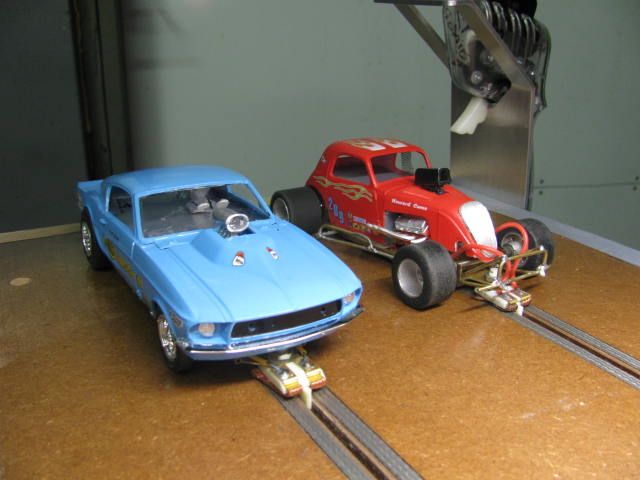 dungeonracer Posted February 16, 2017 Posted February 16, 2017 We've recently started doing some slot car drag racing over here in New Hampshire.Thanks to the effort of a guy we call Itchie, who had made the scale 1/8 mile strip for us to run on, we have had some great evenings of drag racing.This post is of our most recent meet on Feb 11th. (it's copied and pasted here from another forum where I wrote this). We started the evening off with the 1/32 Street Eliminator class. With a breakout set at 1.35, anything faster wouldn't count in qualifying, or would be a DQ in eliminations.Fresh from it's last place finish on it's trip to Ohio, the Dungeon prepped 55 Chevy nailed a perfect 1.350 run to claim TQ.The 55 Chevy was able to work it's way thru eliminations and into the final. On the other side of the ladder, the #3 qualifier, another Dungeon prepped car, this one a Camaro driven by Phil, worked it's way thru and made it an all Chevy final (it was painful to type that ).With standing room only, the crowd was quickly disappointed because the race was over before it started. Phil had red lighted giving the win the the 55!Next up was the Hot Rod Eliminators. These are also 1/32 cars, but with many mods being done and being quite a bit quicker. With a 1.10 breakout, these are fast becoming a crowd pleaser.As with the Street class, a Dungeon prepped 29 Ford named Black Beauty came out with the TQ honors. It was also able to work it's into the final. Coming from the other side, Jungle was able to work his SPE prepped Gasser from the 6th qualifying spot into the final.With again standing room only, the crowd this time got to see a close race, and went into a frenzy when they saw the win light come on in Jungle's lane. Congrats Jungle!! With the little cars done, it was time for the bigger cars. Up first were the Stock Eliminators with a 1.35 breakout. And we saw lots of that in this class .And once again (get used to reading this folks!), a Dungeon prepped car came away with TQ honors. This time it was the "Nails" machine being driven by Robin (I love that gal!!)But what's this?!?! In the 1st round, Robin got sent to the trailer by #16 qualifier Bob, who was running a car given to him by the famous Harry Wise of HRW fame!! Pretty sure Harry would be proud. I know Bob was!!Bob would make it all the way to the final. On the other side, #3 qualifier, racing with us for the 1st time came Matt with his Wilder prepared "Judge" GTO.Matt proved to be too much for Bob, and drove away for the win. Congrats Matt!! The crowd was now getting a bit antsy, as the always entertaining Comp Eliminators came out to blast down the SPE Drag Strip. With a 1.20 breakout, the action was getting along a bit quicker.And for the 1st time all night, the crowd was relieved to hear a Dungeon prepped car was not TQ, as a Kip prepped 209 Altered came away with that honor. Kip would take the 209 Special all the way to the final, where he would be paired up with (ready?) a Dungeon prepped Ohio George Mustang being driven by Robin. Robin had qualified as #2, and worked her way thru against some heavy hitters. Some of you may recall that the Ohio George Mustang was the winner the first time we ran at the Sassy shop. Would it be able to repeat?With lane choice going to Kip, who had run a perfect 1.200 in the semi, Robin was ready. She beat Kip off the line, and held on to grab the win. Congrats Robin! Now the crowd was excited, because the big, bad and fast boys (and girls) came out to play. With a breakout of .89, we still have a couple of breakouts. These babies were flying!!And we also had a record # of entries for any class run at SPE, with 30 entries!!! As we always do at SPE, we have a elimination run off for 16th spot, which meant 15 cars would be competing for the right to go up against the TQ. Um...yeah. TQ? A Dungeon prepped car of course. This time a "work in progress" car called the Wild Deuce.I don't recall who ran the #66 car, but after qualifying 16th, he had to work his way thru 4 rounds to officially claim that spot.The Wild Deuce was only able to get to the 2nd round before being sent to the trailer. The Kip Prepared Hammer Slammer car came from the #4 spot and earned it's way to the final. On the other side, Dana, drag racing for the 1st time, was able to take her new Trailer Hood prepped McDonald's ride from the 11th spot all the way to the final (I should note that she took down the Black 57 along the way ).Kip, now wanting to avenge his loss to a woman in the previous class, again had lane choice. Turns out it didn't help, as when the race was over, the win was glowing in Dana's lane. Congrats Dana!! I should mention we had over 80 entries on this night (we're allowed to enter multiple cars in any class). Not sure at the moment when we'll be racing next, but I'll update as soon as I know.