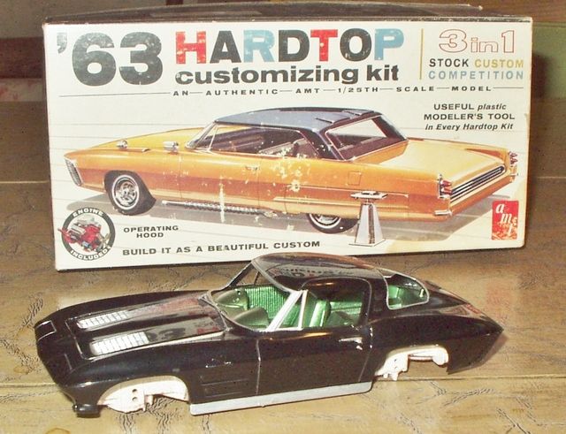 Snake45 Posted February 17, 2017 Posted February 17, 2017 Thought some of y’all might enjoy seeing some of my C2 resto projects. All of these are original annuals, no reissues. AMT ’63 Coupe #1: Got this one in the early 2000s from a model airplane friend who was helping a neighbor clean out an attic. It came with the original instructions and many extra parts, and the outside side exhaust was originally on it, which I removed long ago (notice the glue boogers on the rockers). I originally planned to strip and rebuild it as stock, but then decided to restore it as the survivor that it is. The ancient paint polished out nicely, except of course for the runs and bubbles (which I tried to at least level out with careful color-sanding), but it is what it is. Since the color is nonstock, and the interior has a definite custom vibe, and the rockers are glue-roached, I stuck with the builder’s original intent of a mild street & show custom. The vinyl tires toasted the stock ’63 wheel covers, a pity, so I sustituted some wheels and tires appropriate to a 1963-64 era custom. Recently finished the restoration, and hope to have finished pics posted “Under Glass” soon. [URL=http://smg.photobucket.com/user/Snake45/media/Model%20Cars/Corvettes/63VetteAMTOrig01_zpsxmej6ja5.jpg.html][/URL] [URL=http://smg.photobucket.com/user/Snake45/media/Model%20Cars/Corvettes/63VetteAMTOrig06_zpsy1nphgd9.jpg.html][/URL] AMT ’63 Coupe #2: Bought this one off eBay recently mainly because it seemed to have most of the original custom parts in the box. Body didn’t look like much in the pics but I was pleasantly surprised to find a near-perfect black paint job on it. Even the chrome trim the guy did on it isn’t bad at all. Hadn’t planned to do a black coupe, but I’m just gonna finish this one up as a survivor—for now, at least. Original builder painted the interior in some kind of metallic dark green, which isn’t authentic, but I’m not a huge fan of any of the factory ’63 interior colors for a black exterior (white wasn’t offered), so I think I’ll just go ahead and go with the green. Although the box had most or all of the cool custom parts, and all the stock body parts (including the taillights still on the trees) it had no tires, no stock wheels, no wheel backs, and no glass. I can source all that stuff from common ’63 reissues. [URL=http://smg.photobucket.com/user/Snake45/media/Model%20Cars/Corvette%20Restos/AMT63VetteHTB02_zpsxq6poyo1.jpg.html][/URL] AMT '67 Coupe #1: Bought this one recently at the local Toy & Train show for $8. I think the vendor thought it was either a common MPC reissue, or maybe a common AMT '63, but either way, I recognized it as an original annual AMT '67 and almost sprained my wrist reaching for my wallet. Upon closer examination at home, I discovered it's not quite as cherry as I first thought. Turns out the Original Builder had cleanly sanded off the rear deck Corvette emblem, and the crossed flags on the nose. And filled in the rotating headlight panel lines. So it can't be restored “stock” as-is. And of course the paint (some kind of very dark plum/purple) is a nonstandard color. And the wheels aren't AMT '67s, they seem to be '68+ MPCs. Ah shucks oh well. Still worth way more than eight bucks. It's in such clean shape, it's gone to the head of the line here at the Snakepit Sting Ray Rescue & Resto shop. Only thing I've done to it in these pics is, I've polished off part of the badly-done silver paint on the windshield frame, along the top. It's still on the A-post to give you some idea of why it had to come off. Rubbing alcohol wouldn't take it off, as it sometimes will, so I had to polish it off with Wrights. Fortunately, the paint, whatever it is, seems VERY tough and durable. Judging from overspray on the inside of the body, it's some kind of candy purple or candy red over black primer. The color looks quite “plum” in these pics, which I lightened a little for better netposting. In real life, it looks black—unless you set it next to something that's really black, or look at it in strong light, and then purple/plum-ish tone comes through. [URL=http://smg.photobucket.com/user/Snake45/media/Model%20Cars/Corvette%20Restos/AMT67VetteHTB02_zpsd0vt6cni.jpg.html][/URL] [URL=http://smg.photobucket.com/user/Snake45/media/Model%20Cars/Corvette%20Restos/AMT67VetteHTB04_zpscvyrenyp.jpg.html][/URL] More to come, if anyone's interested....