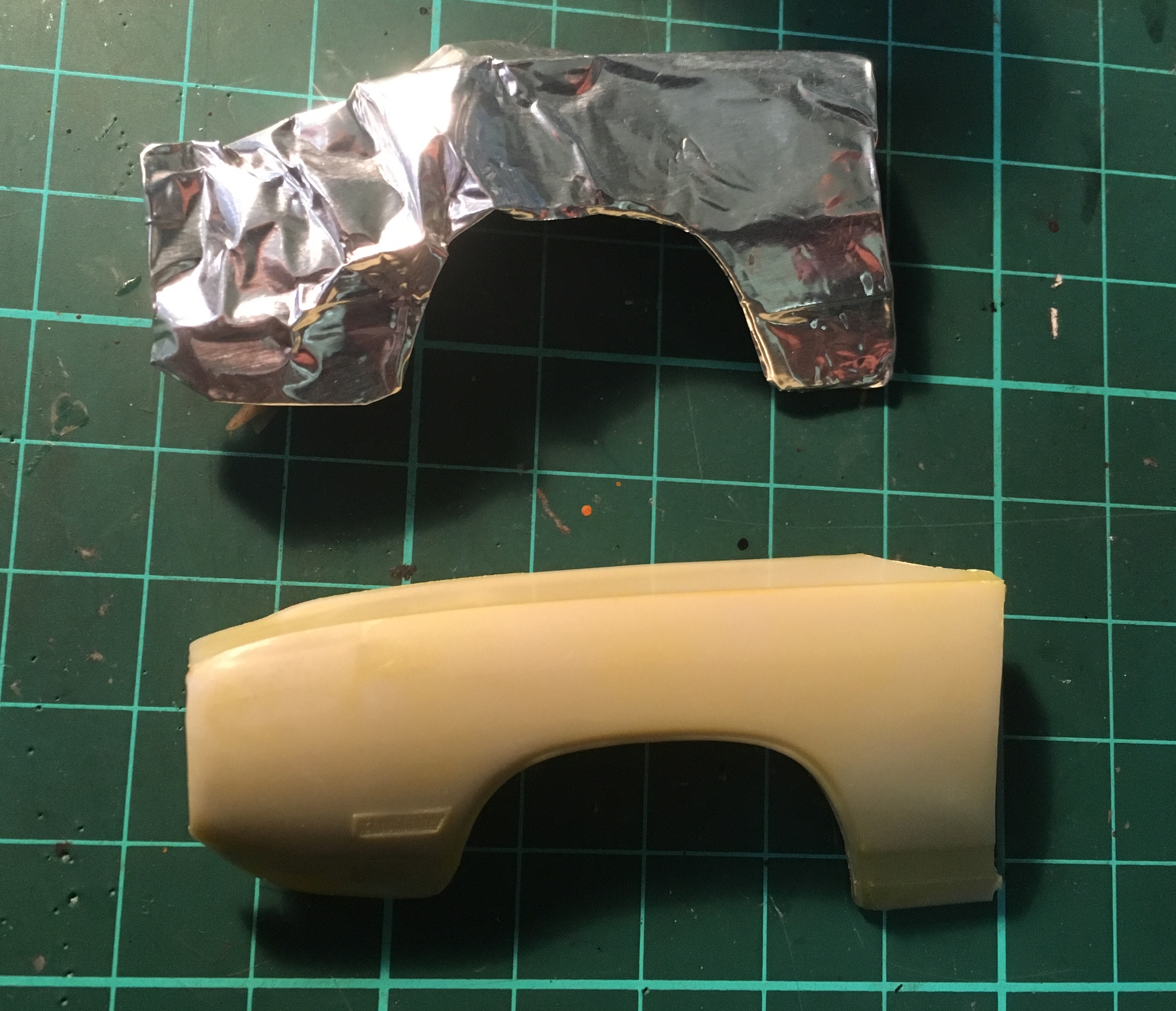Furiousgeorge Posted December 27, 2017 Author Posted December 27, 2017 (edited) I picked up some of the aluminum tape, and started messing about with it. I think it’ll work nicely with some practice. Made a full fender and bent it up some. I’ll do the front 1/3rd or so if each fender, the rad support, the bottom panel under the grille, and the front bit of the inner fenders. I ended up sticking the tape to some regular tin foil to strengthen it up some without making it too thick. Edited December 27, 2017 by Furiousgeorge