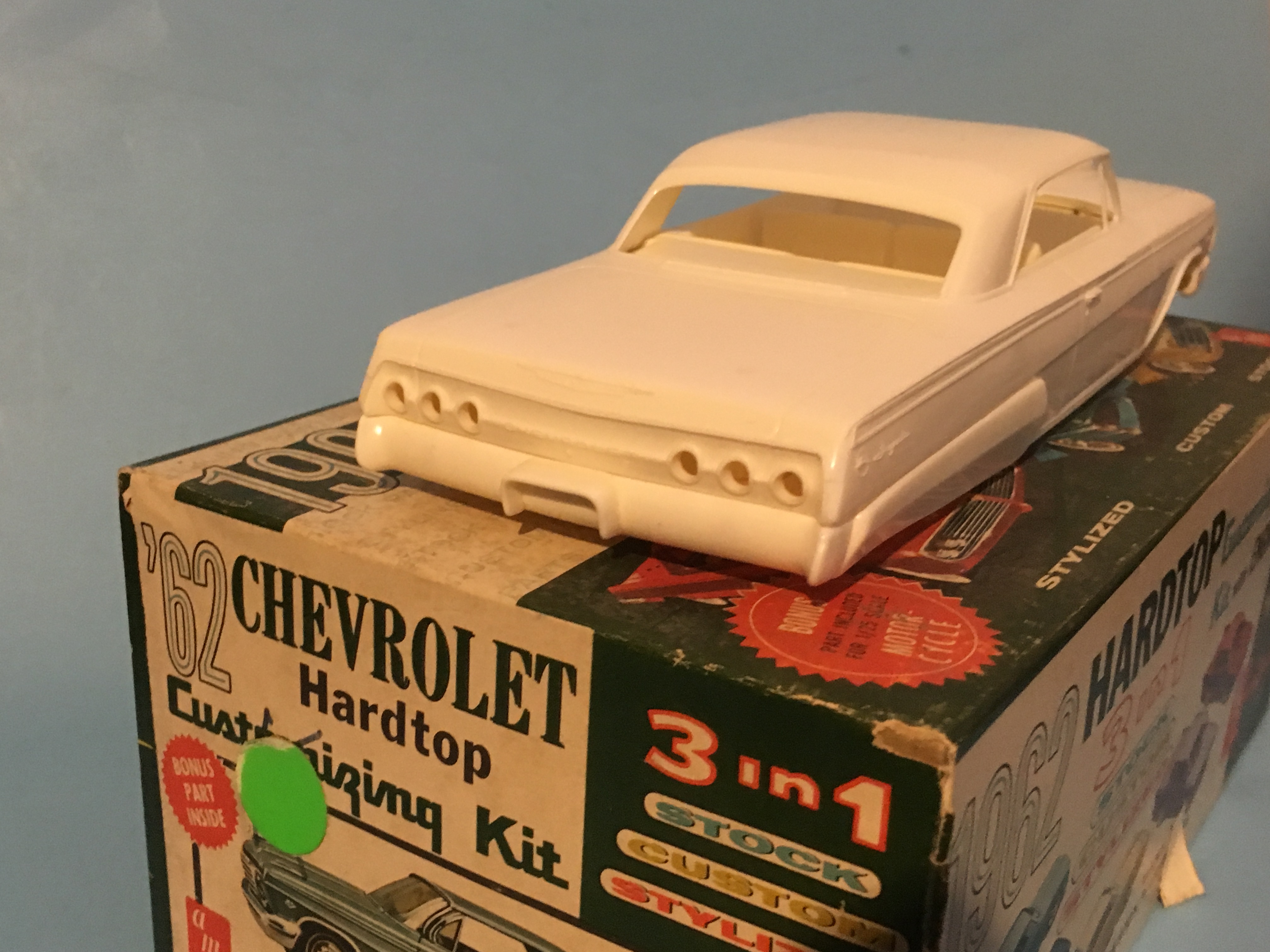 Howard Cohen Posted November 6, 2018 Posted November 6, 2018 I picked this original 1962 Chevy Impala Hardtop kit up at Toledo last month, complete, not started. It's a Styline kit, so I am building it with some of the Styline parts, floating front end, fender skirts, hood scoop, rolled pans. I am also building the later version 1962 Impala convertible but as a mild custom. Both cars will have the same colour schemes, just two versions of custom, early and late. Oh, I am building the Styline kit the way many of us would have built it in 1962, so don't expect to see any fancy molding or filled seams, just clean fitting and gluing