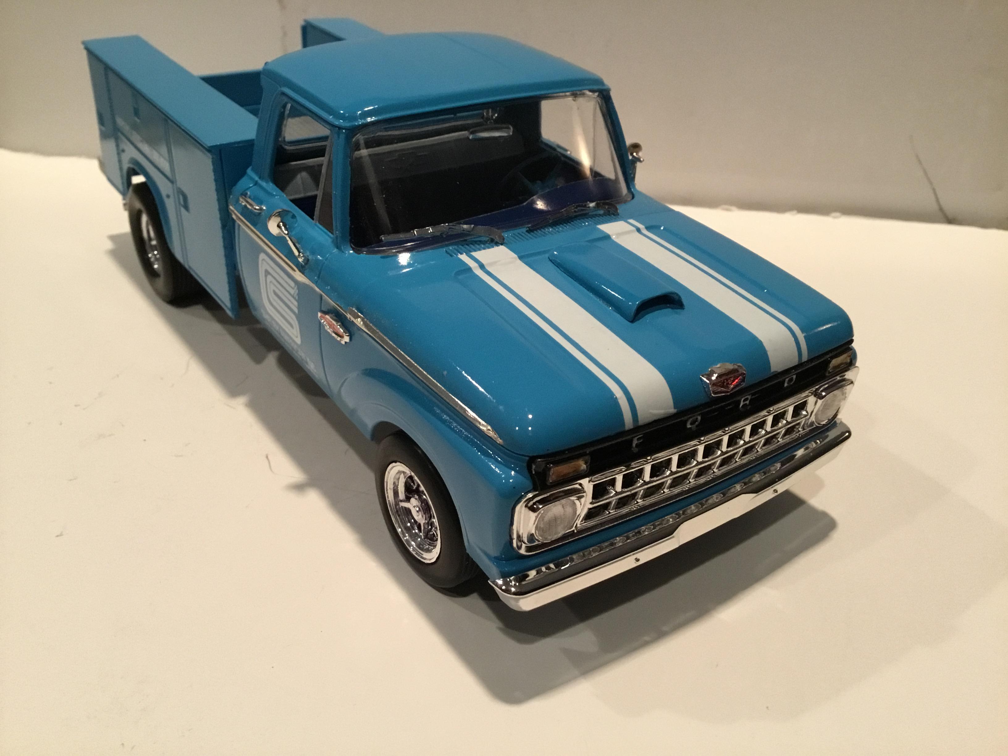 cobraman Posted November 5, 2019 Posted November 5, 2019 Did this one as if it was a service truck for Shelby . Paint is Big Bad Blue . Halibrand style wheels from a die cast car . Decals from the Cobra race team kit . Ended up with junk in the paint . I believe I forgot to tack rag it before clear . Not a bad kit but had some problems but could have been me and not the kit . 2
