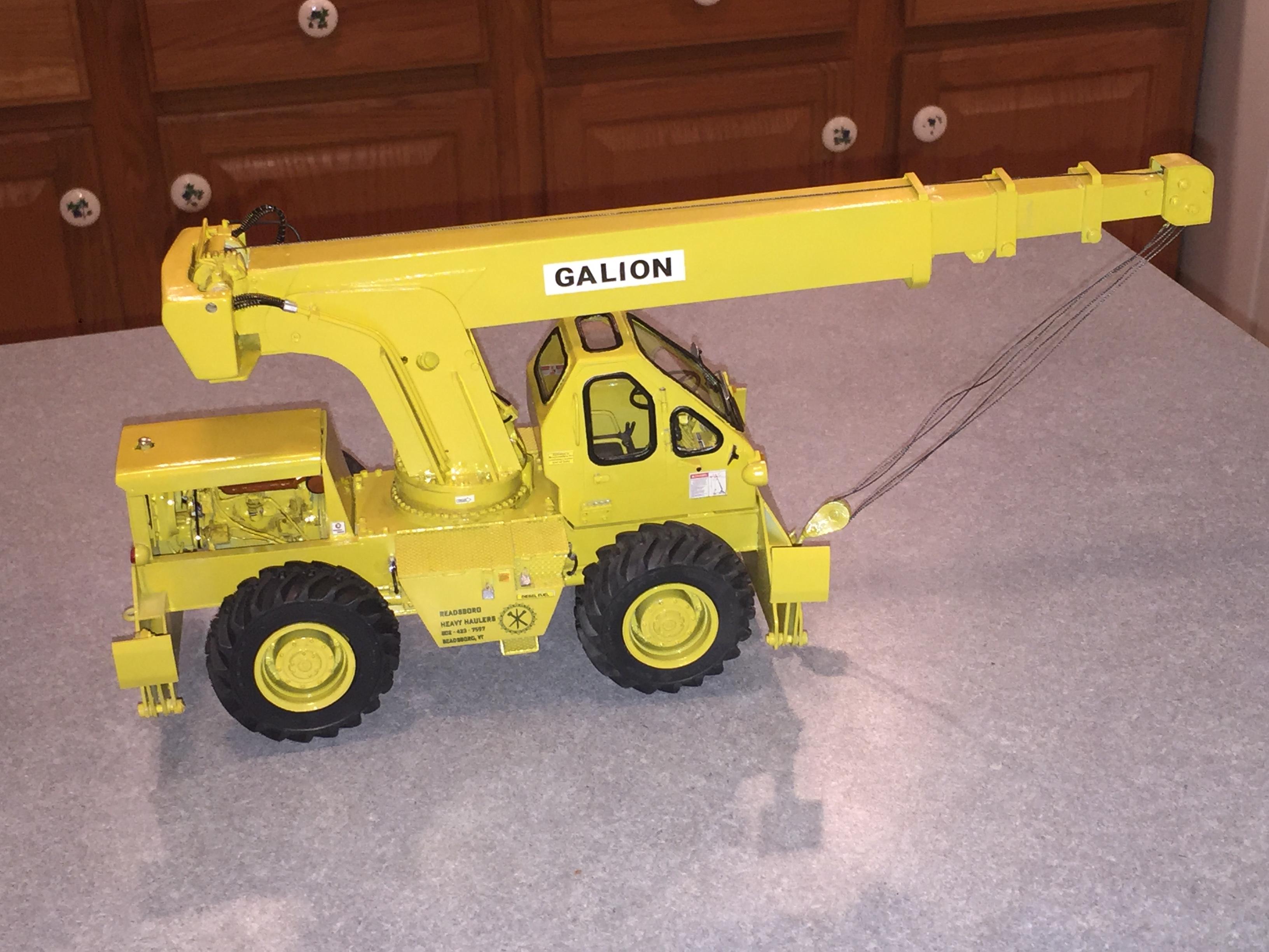redneckrigger Posted November 27, 2019 Posted November 27, 2019 (edited) Here is my Galion 12 1/2 ton rough terrain crane. Took just about five months to do, which for me is a world record. Everything works as the real one, outriggers, doors, steering both regular and crab, boom up and crowd and swing. Had one casualty right at the very end when the winch spool simply decided to seize up so that will be a trip to the repair shop in the near future. This has been by far, the most challenging mind wracking build I have ever attempted, and I want to thank all who helped me overcome obstacles along the way! I hope you all enjoyed the build. Please forgive the photography skills, or lack thereof. One thing I am not is a photographer/lighting pro! Edited November 27, 2019 by redneckrigger