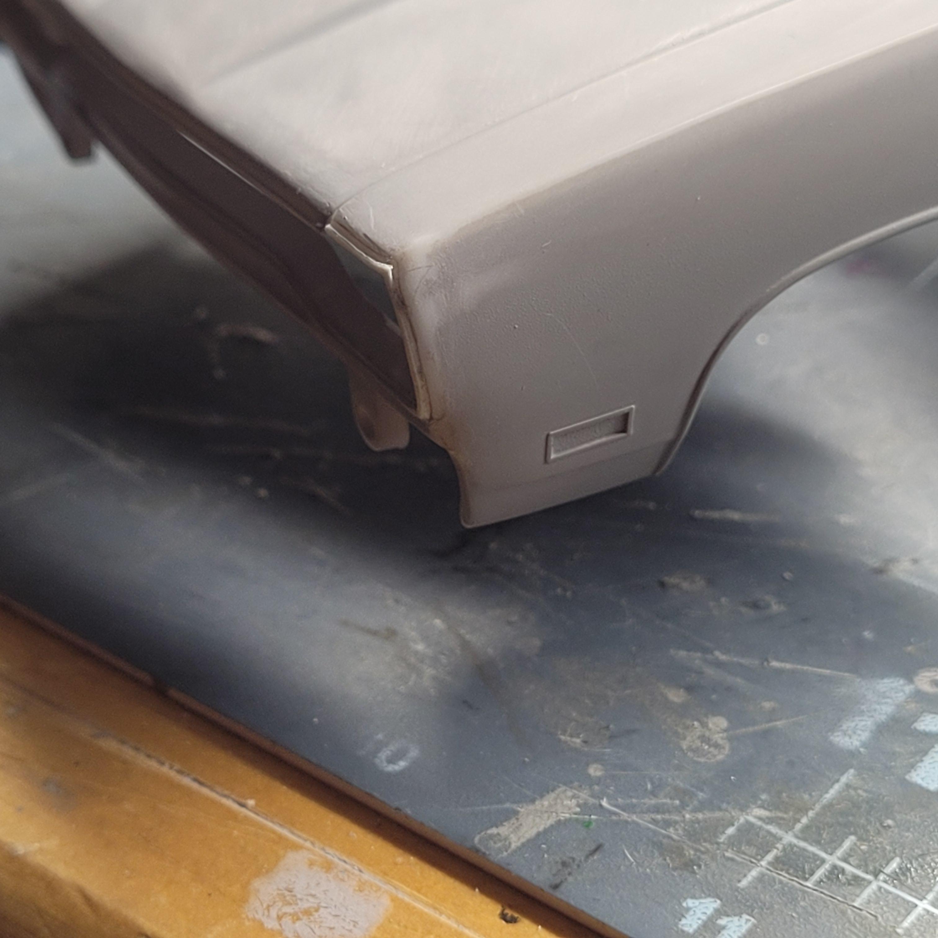 johnyrotten Posted 4 hours ago Posted 4 hours ago Added chrome trim around the front grill, whatever was on the kit looked like a mold seem or flash. Had to make a couple tool to shape and scribe this. 2