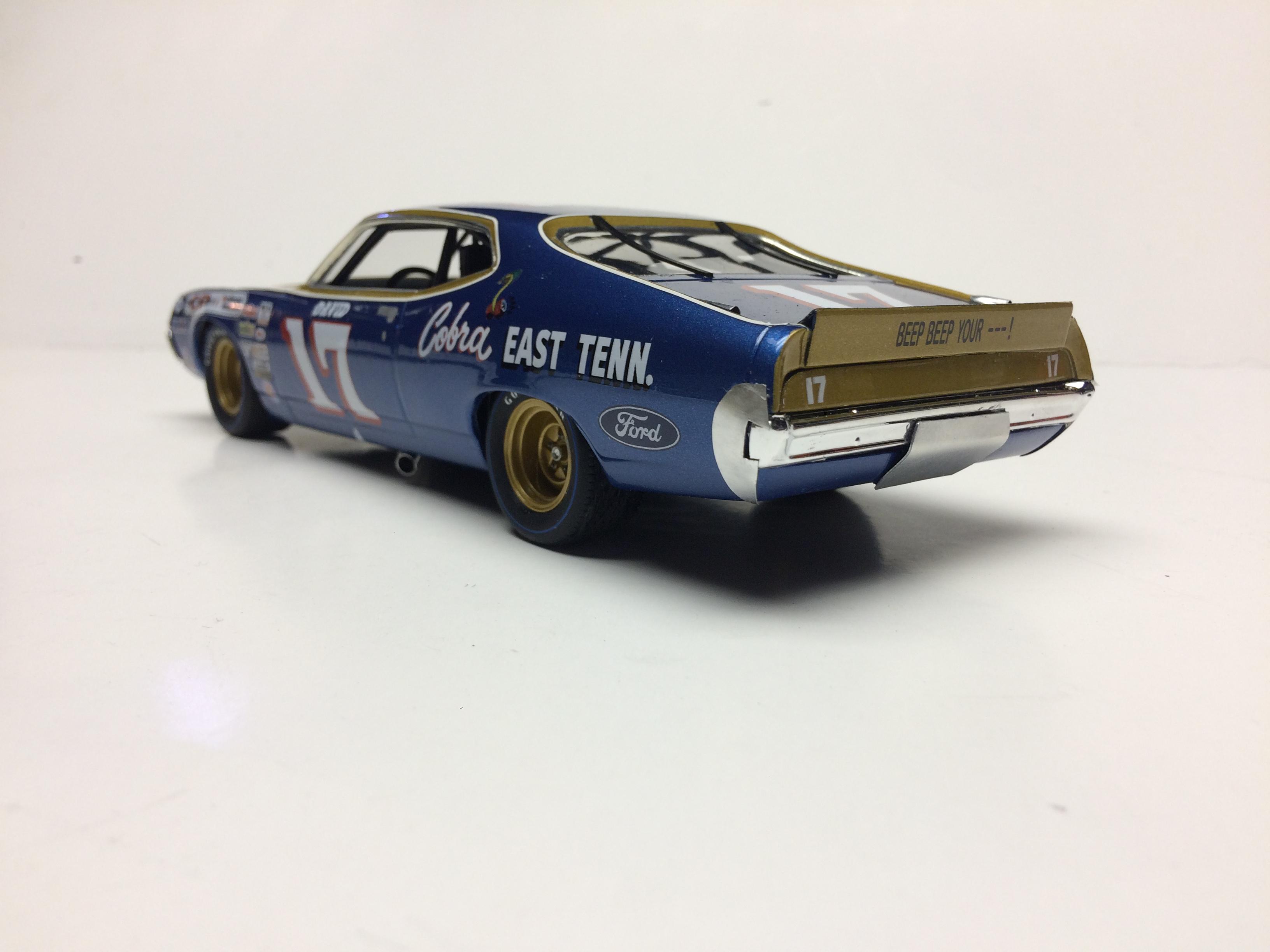 yellowsportwagon Posted February 28, 2020 Posted February 28, 2020 This is David’s 70 Holman-Moody Riverside 500 car. Revell body Polar Lights Chassis. Lots of scratchbuilt parts. PPP wheels and tires custom decals. 1970 Acapulco blue and bright gold. A coat of yellow candy over the gold.