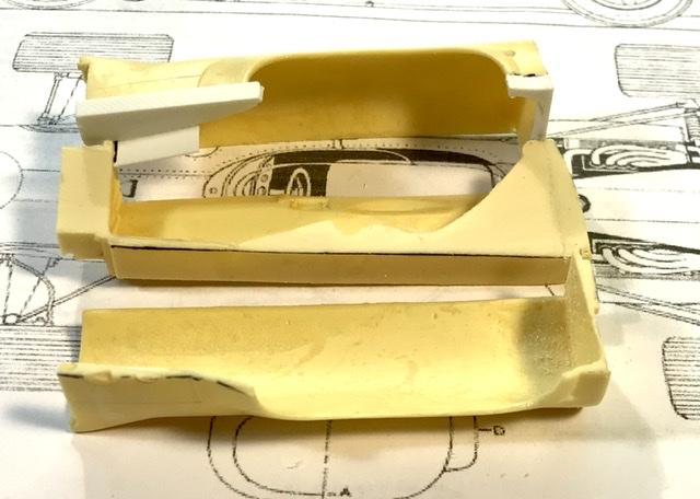 absmiami Posted July 11, 2020 Author Posted July 11, 2020 A sharpie is used to prep the patient for surgery the body casting is sawed apart and the a strip of evergreen is super glued to one side The will recover the missing body width and it won’t change the shape of the monocoque in any way that can’t be corrected . The details casted into the center line of the casting will be created again once the width of the casting is corrected.