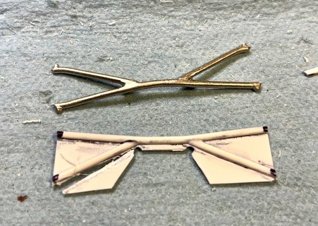 absmiami Posted March 19 Author Posted March 19 Turning my attn to the rear suspension - the A shaped lower links in the Joker kit are white metal - they are simplified - but they have the right shape - so i traced the part on to some .012 plastic sheet as a rough guide …