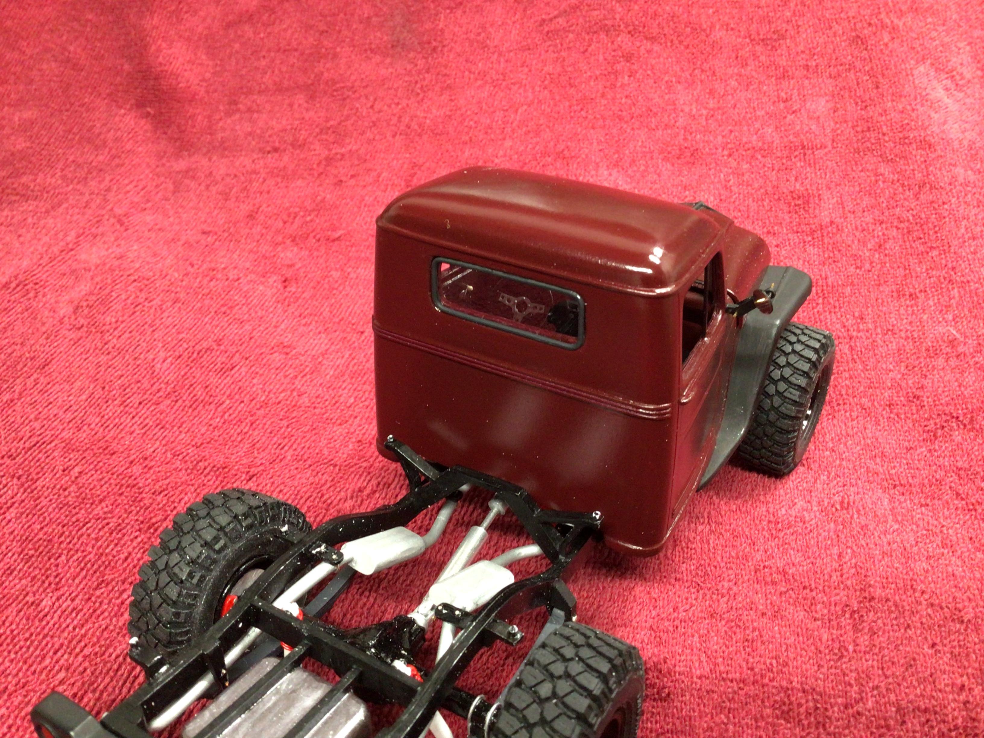 NOBLNG Posted November 2, 2021 Author Posted November 2, 2021 (edited) Well I’ve been back on this one lately. There’s not a lot left to do. I got the interior finished and the floor pan and firewall are now glued in place. I finished up the front end as well with some scratch built headlights and turn signals. The radiator and fan are permanently mounted now also. I scratch built disc brakes for it from some thin aluminum and styrene bits. I wasn’t going to wire the engine, but after I did the battery and winch cables I figured it needed some plug wires at least. With the GM 14 bolt rear in there I needed some 8 lug rims, so I made some resin copies of the ones from the Revell GMC plow truck and the tires are from Scenes Unlimited. Now I need to get the windows in it and scratch build some side mirrors. The vent window divider is part of a Bobby pin.? Edited January 23, 2023 by NOBLNG 1