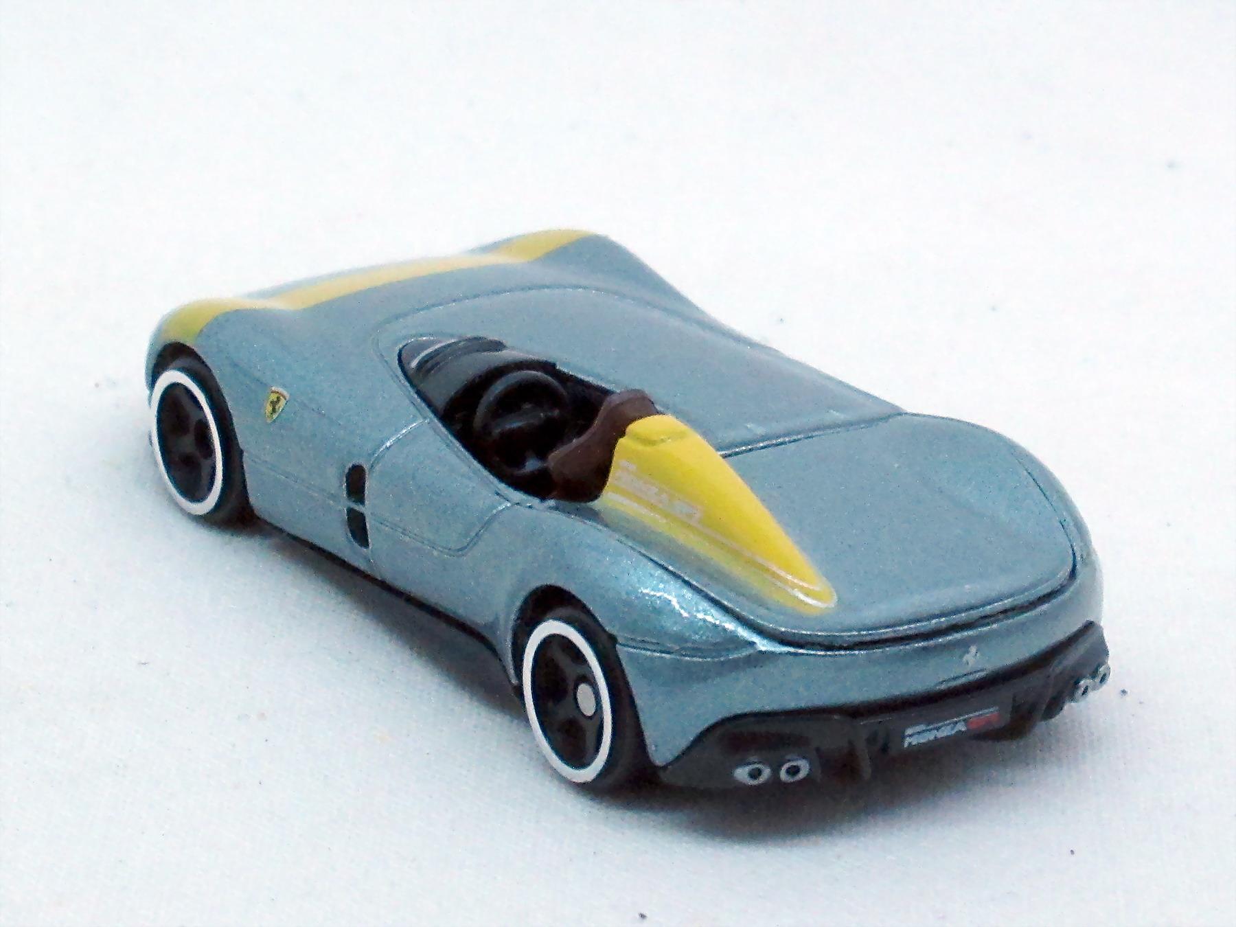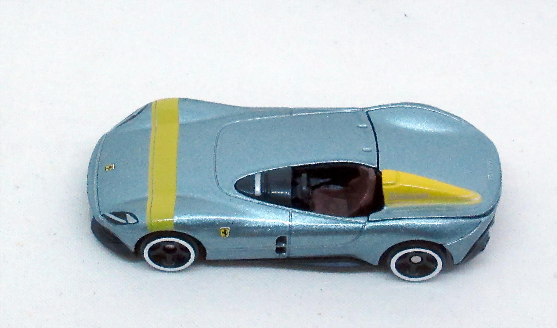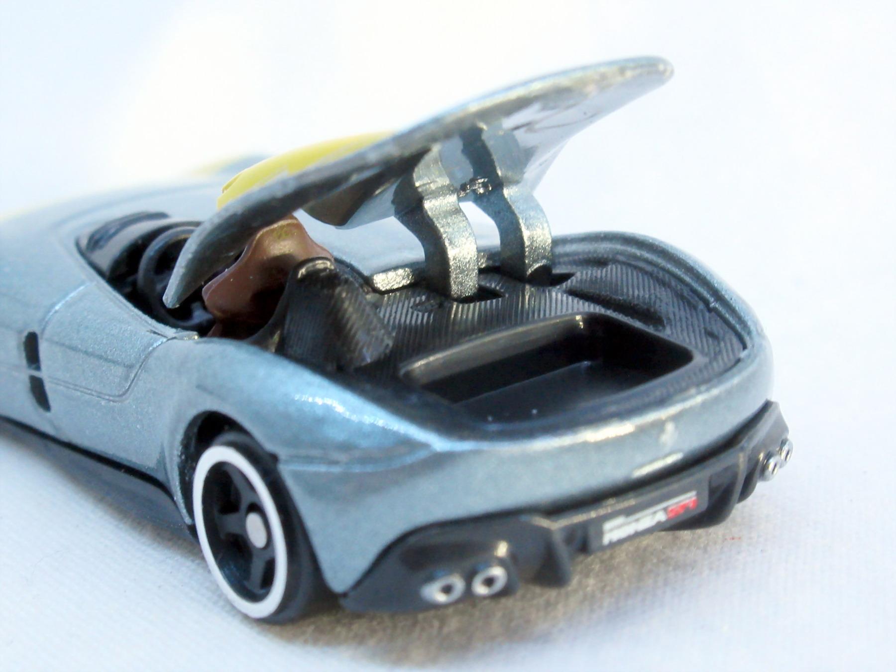 caapa Posted yesterday at 02:01 PM Author Posted yesterday at 02:01 PM Ferrari Monza SP1 2019 The Monza SP1 is a celebration of Ferrari's racing heritage, specifically its open-top sports cars of the 1950s. It is the first model of Ferrari's new "Icona" series, a limited-production, single-seat sports car. The base is mainly the 812 Superfast, the 6,5 liter powerplant with 799 HP, the seven-speed dual-clutch transmission, the dashboard, etc. are from that. The top speed is a tad less than 360 km/h, acceleration to 100 km/h in less than 3 sec. The body design follows the 1950s „barchetta” layout – it means roof-less. A unique "Virtual Windshield" system uses airflow to create a buffer of air over the driver, mimicking the effect of a traditional windshield. But probably better to deside you use very fashinable sunglasses or goggles or a helmet with face-shield. Ferrari has thought of everything – the Monza comes with its own accessories. Cap, scarf, handshues and a Ferrari branded helmet made of carbon fiber. Only 499 units are produced, for $1,75 million each, without any extras and accessories. And no owner could buy more than one ! The model is made by Bburago in 1:64 scale. Enjoy the pictures.