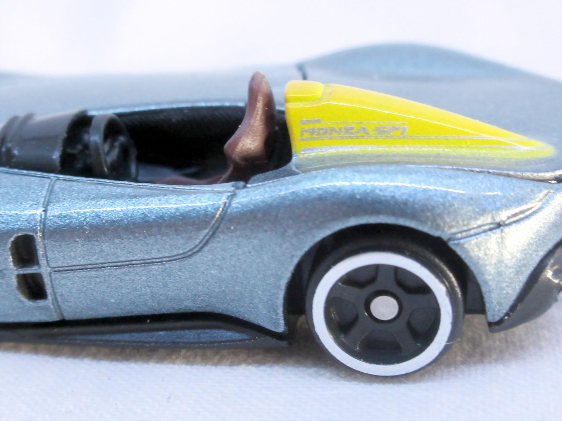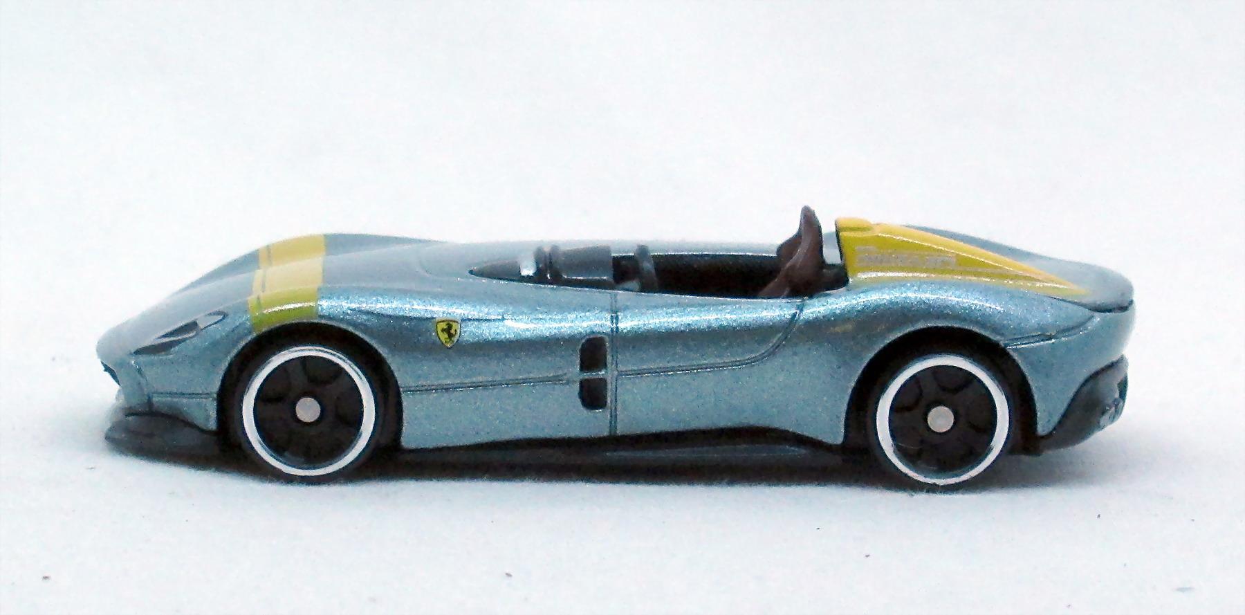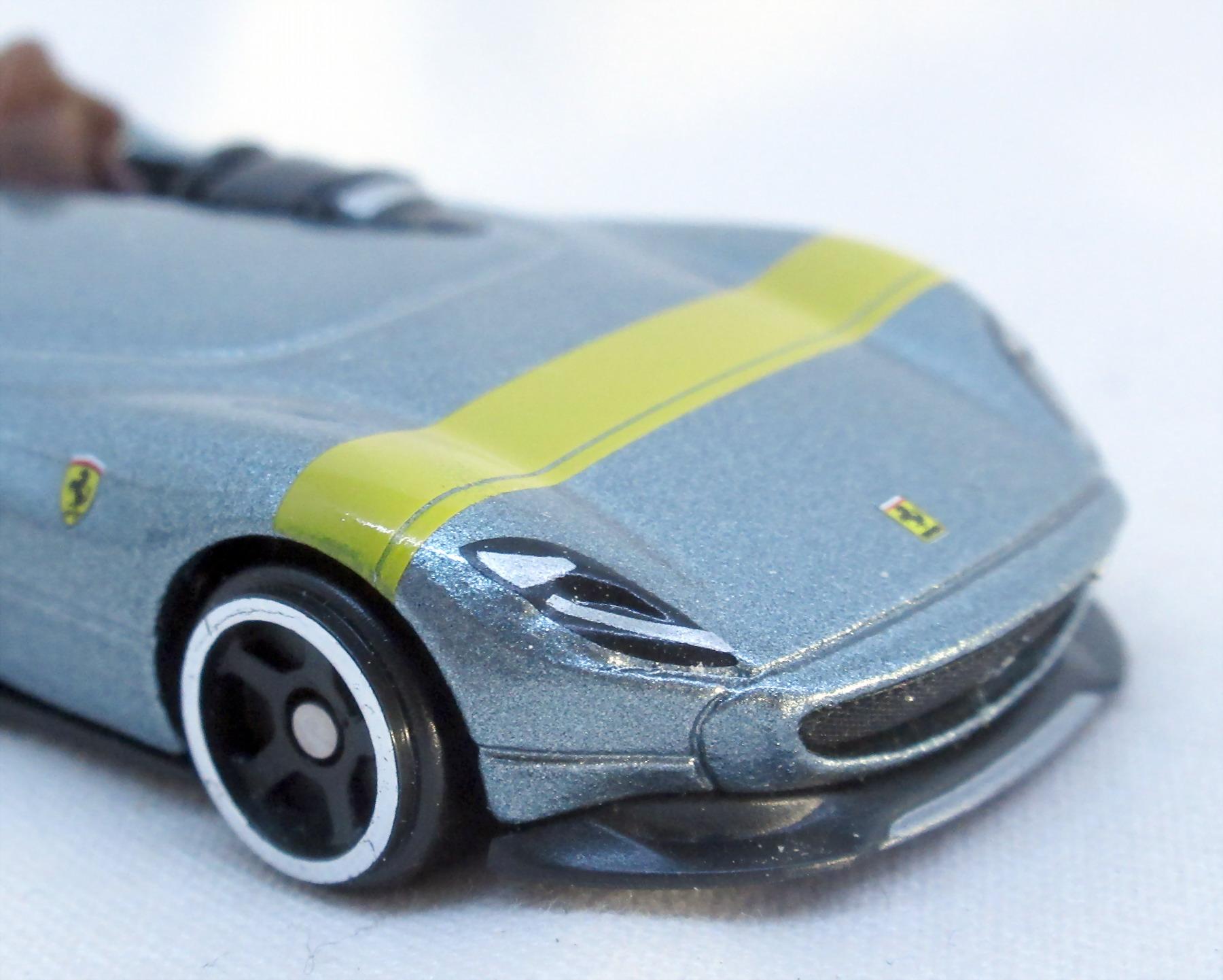 caapa Posted yesterday at 02:01 PM Author Posted yesterday at 02:01 PM Ferrari Monza SP1 2019 The Monza SP1 is a celebration of Ferrari's racing heritage, specifically its open-top sports cars of the 1950s. It is the first model of Ferrari's new "Icona" series, a limited-production, single-seat sports car. The base is mainly the 812 Superfast, the 6,5 liter powerplant with 799 HP, the seven-speed dual-clutch transmission, the dashboard, etc. are from that. The top speed is a tad less than 360 km/h, acceleration to 100 km/h in less than 3 sec. The body design follows the 1950s „barchetta” layout – it means roof-less. A unique "Virtual Windshield" system uses airflow to create a buffer of air over the driver, mimicking the effect of a traditional windshield. But probably better to deside you use very fashinable sunglasses or goggles or a helmet with face-shield. Ferrari has thought of everything – the Monza comes with its own accessories. Cap, scarf, handshues and a Ferrari branded helmet made of carbon fiber. Only 499 units are produced, for $1,75 million each, without any extras and accessories. And no owner could buy more than one ! The model is made by Bburago in 1:64 scale. Enjoy the pictures.