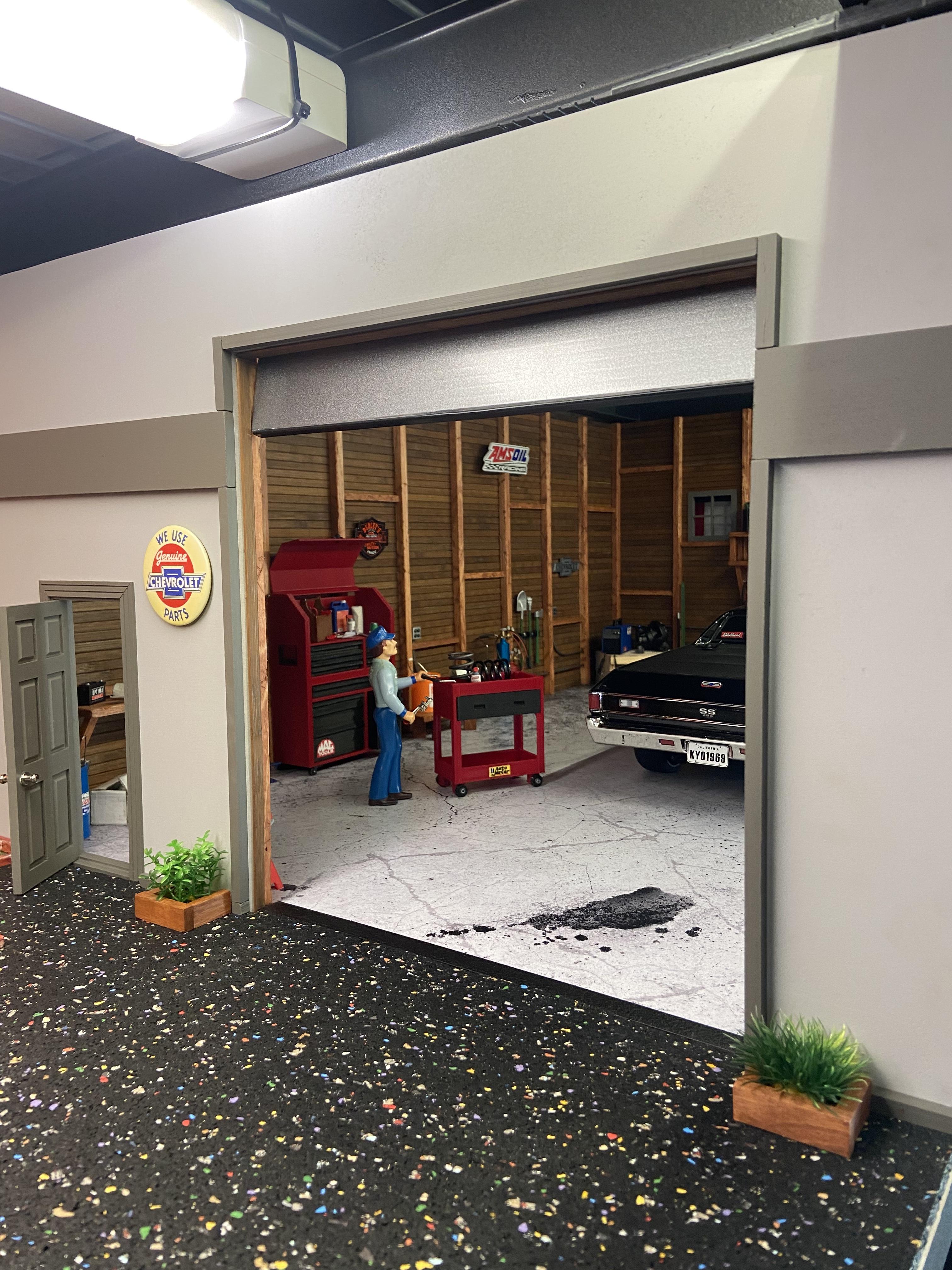 RCScaler Posted January 5, 2022 Posted January 5, 2022 Hello everyone! New to the forum and new to the diorama hobby! I’ve been into RC cars, car models and the scale realism of them since I was a young boy, and now I’ve decided to take things a bit further with building a ‘somewhat’ 1/10 scale garage! I say somewhat because I didn’t try to scale everything to 1/10 but did the best I could with materials I could find around the house and things bought inexpensively from a hardware store. The entire thing is mostly made of wood and some vinyl stickers. Hoping to learn more as time goes by, like how to make realistic looking concrete and bricks instead of just using stickers! I’m posting this in the finished dioramas, but I keep thinking of more I can do to it lol, can’t slow down a creative mind! Will post more pics as I add more!! Thanks for looking!!! greg 2